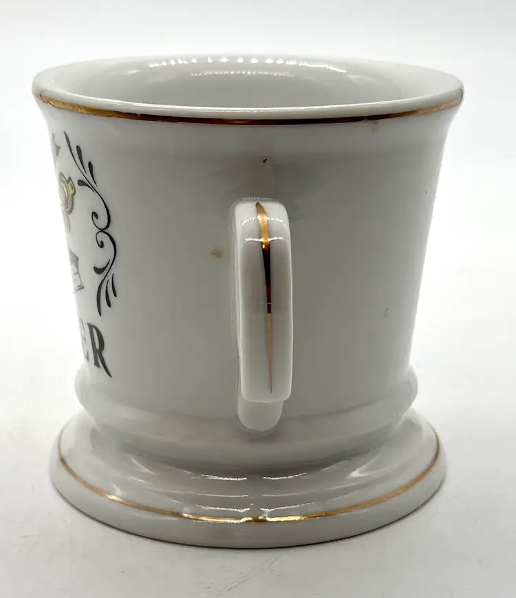 Vintage shaving mug. 4 3/4”. No chips or cracks. Light wear on gold paint