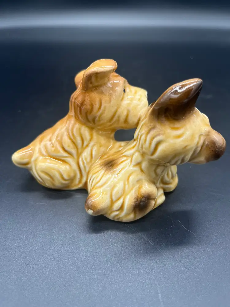 Vintage Occupied Japan Ceramic Figurine - 2 Scottie Dogs Sought after collectible Glossy glaze Excellent condition, no chips or cracks Made in Occupied Japan, 1945-52 3" tall, 3.5" wide, 3" deep