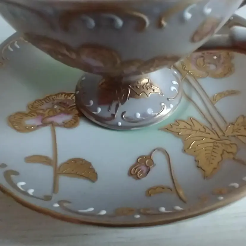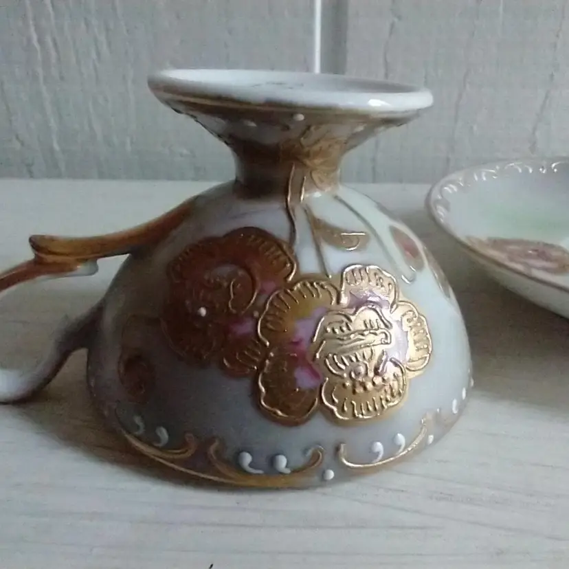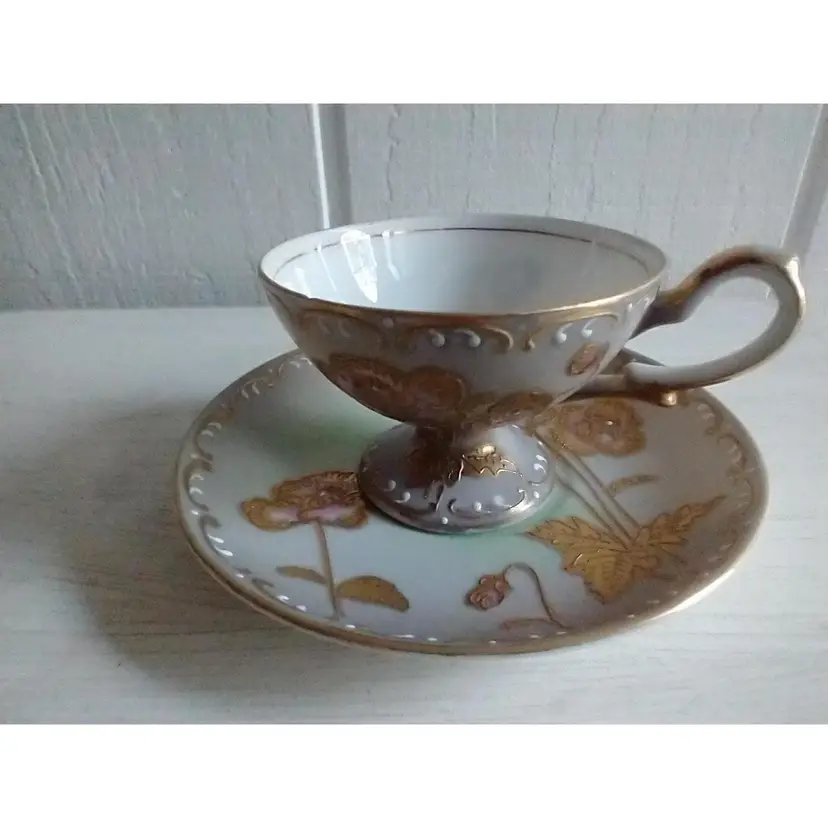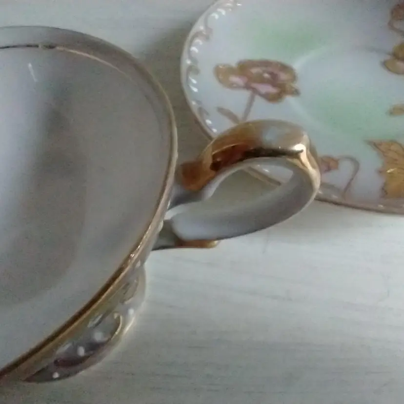 RARE FIND Vintage Demitasse petite Tea or Espresso CUP & SAUCER Occupied Japan China Pink White Green Rose Floral motif Approx measurement Cup - 2 1/8"H x 2 1/2"W opening Saucer - 4 3/4"W Vintage condition No chips, cracks, or crazing