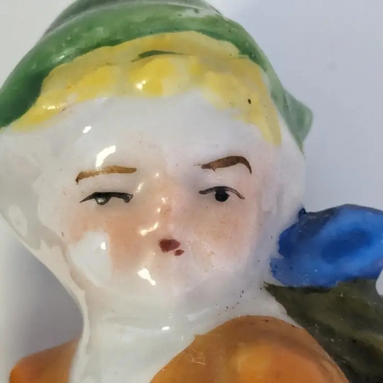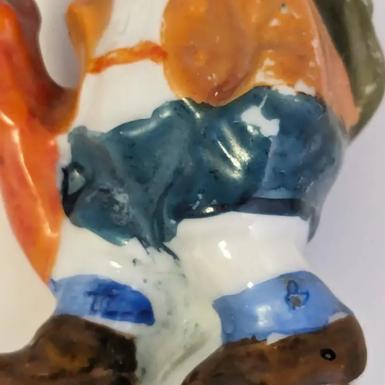 Figurine is in good condition with some colour loss but no chips or cracks. Reminds me of a German alpine figure. Measures 3 1/8" in height.