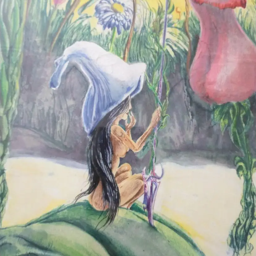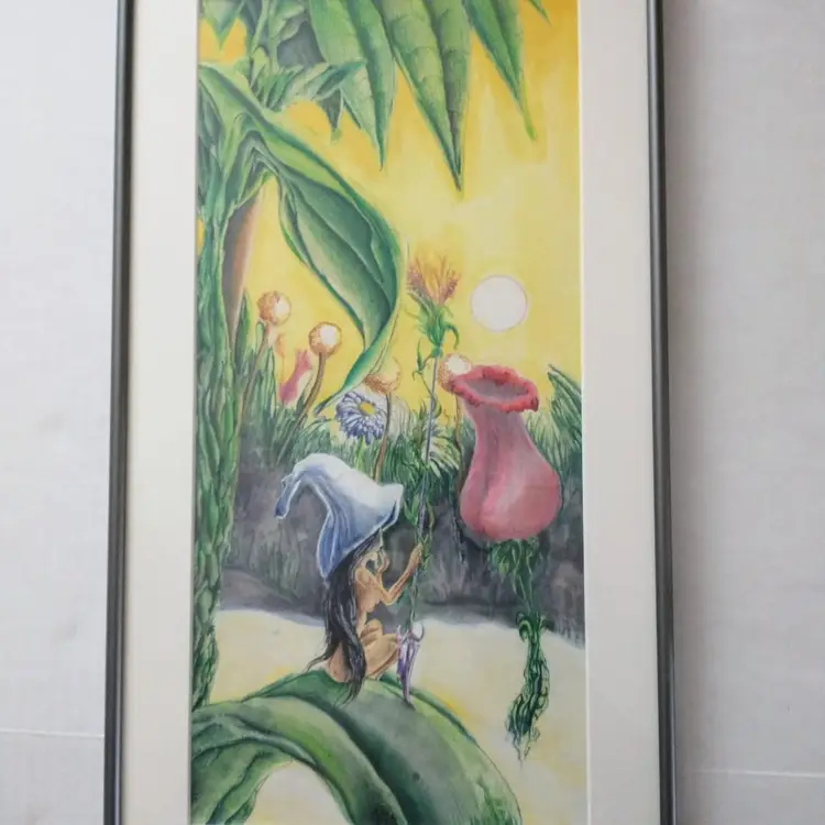 Great condition no foxing Bright oil pastels not signed that I can see metal and glass frame