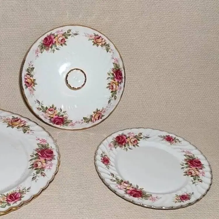 📦 Condition: Used – Sold As-Is • One plate has a visible chip (see photo) • All other pieces in good vintage condition • No major cracks or repairs • Gold trim and floral decals show light wear consistent with age • Stored in a smoke-free environment • Original packaging not included
