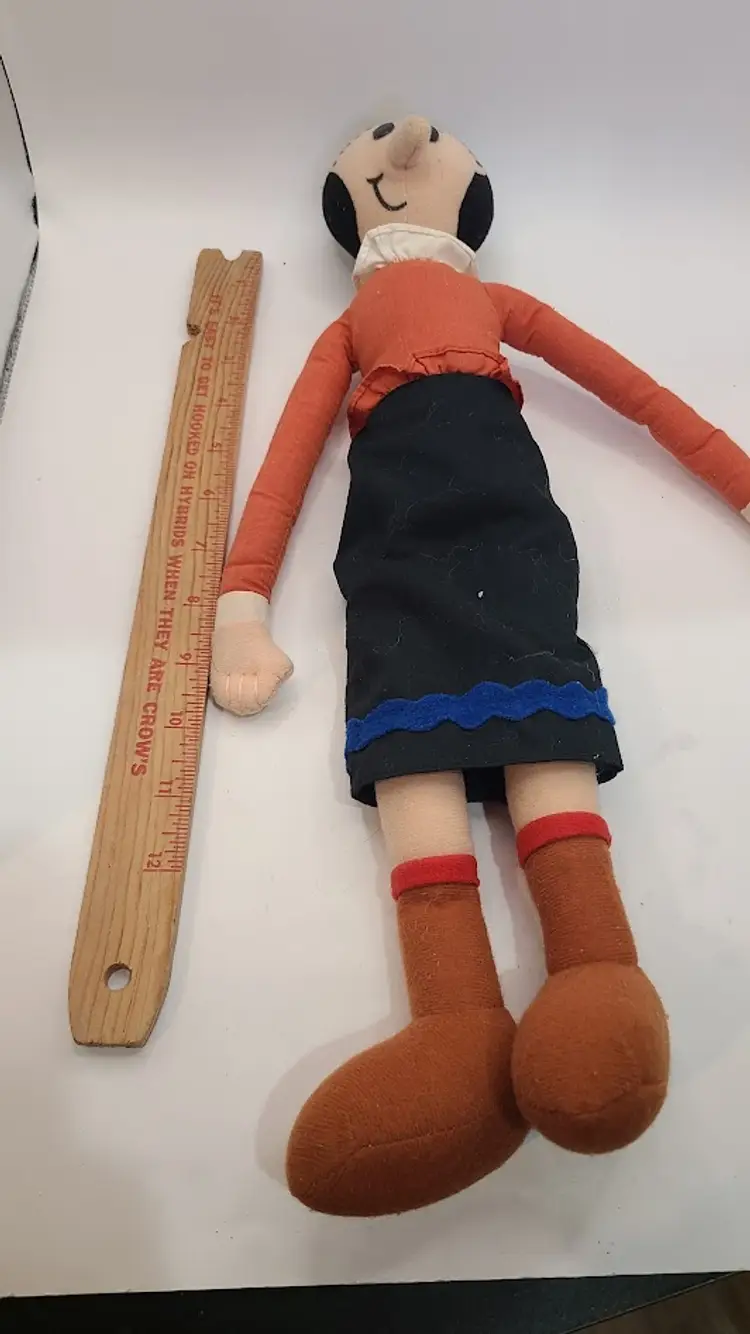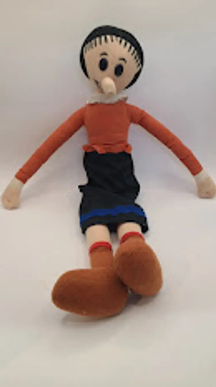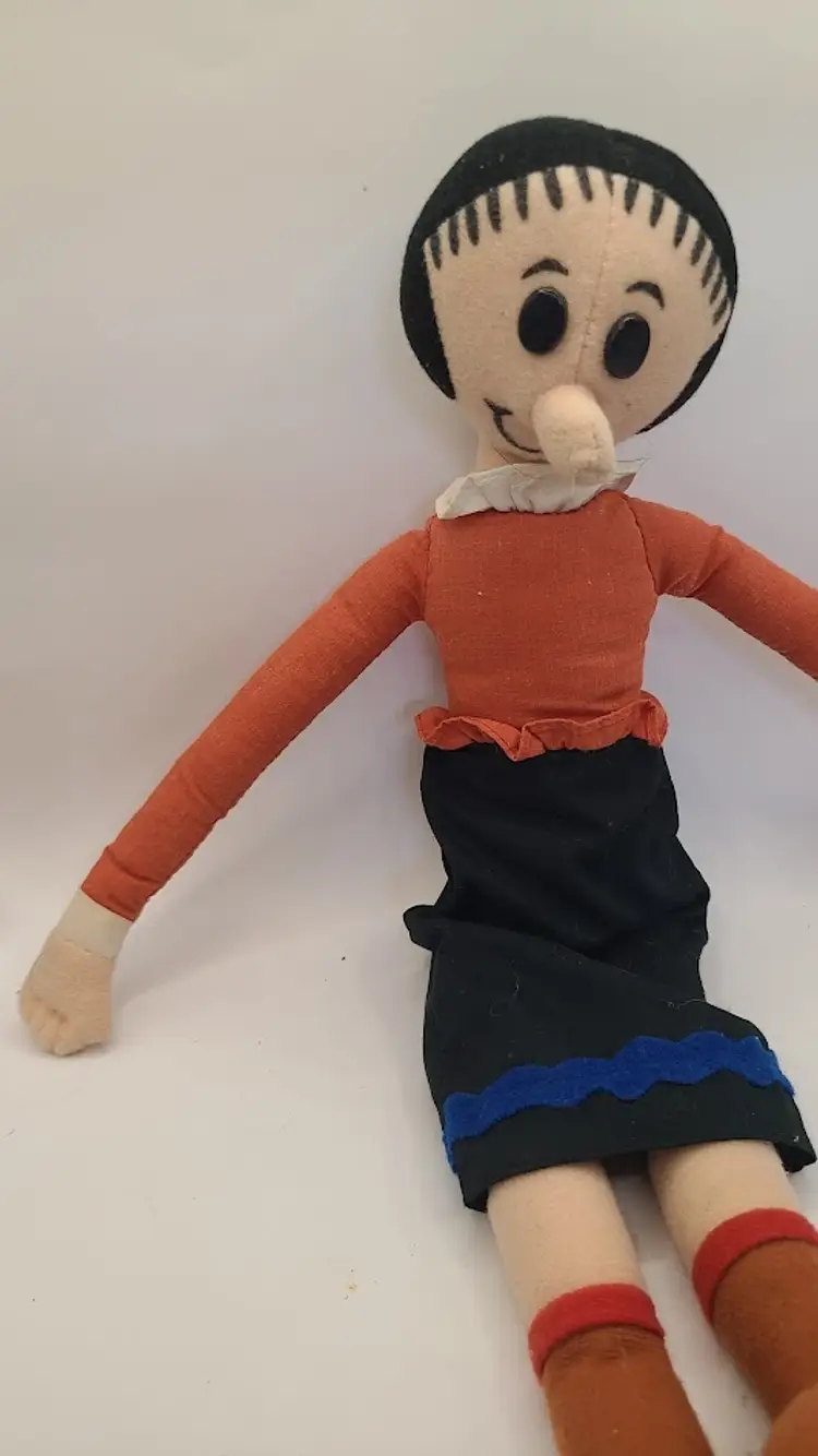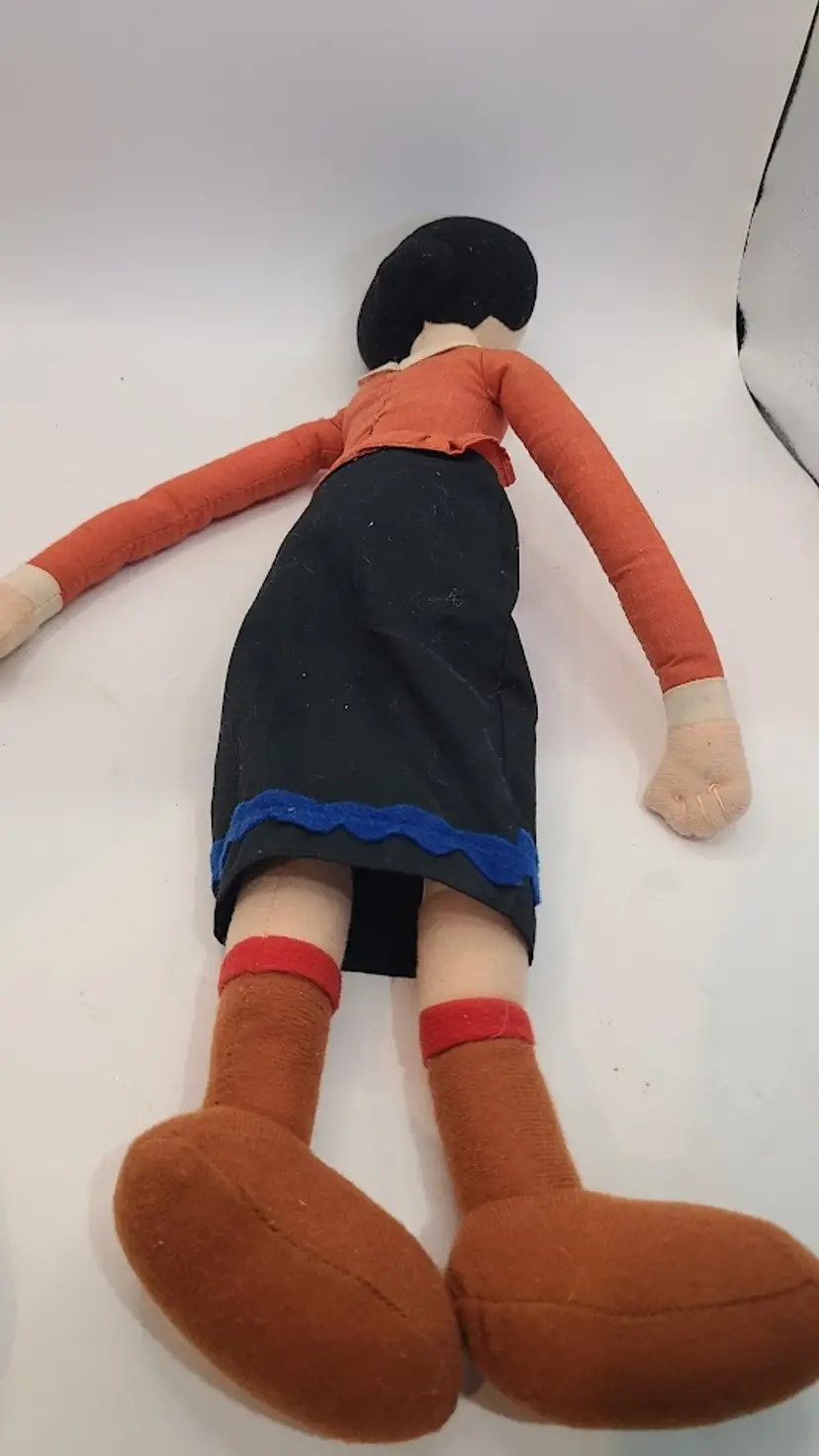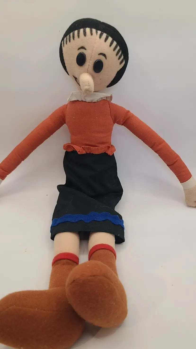OLIVE OYL CHARACTER Doll 9". Condition is Used. Doll has a little black spot on her right leg, otherwise she is good condition for her age. Please see attached photos for a complete description of the item that you will receive.
