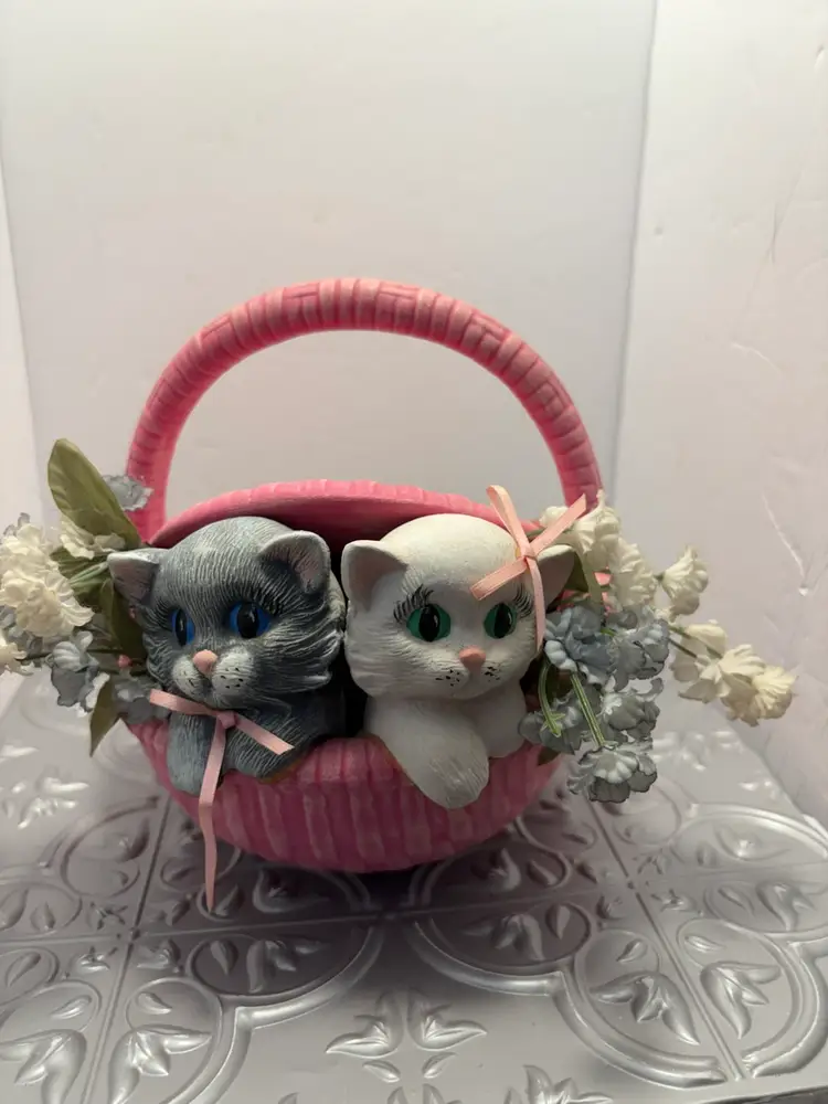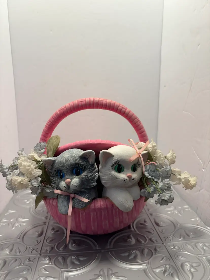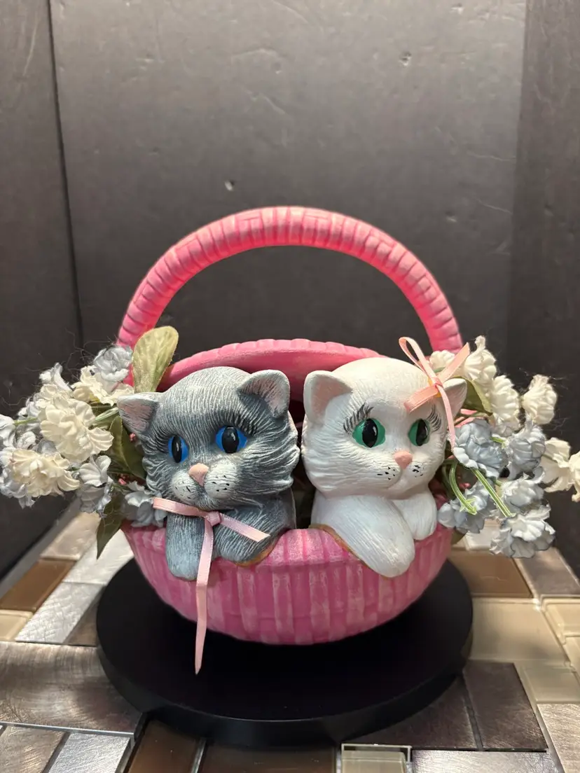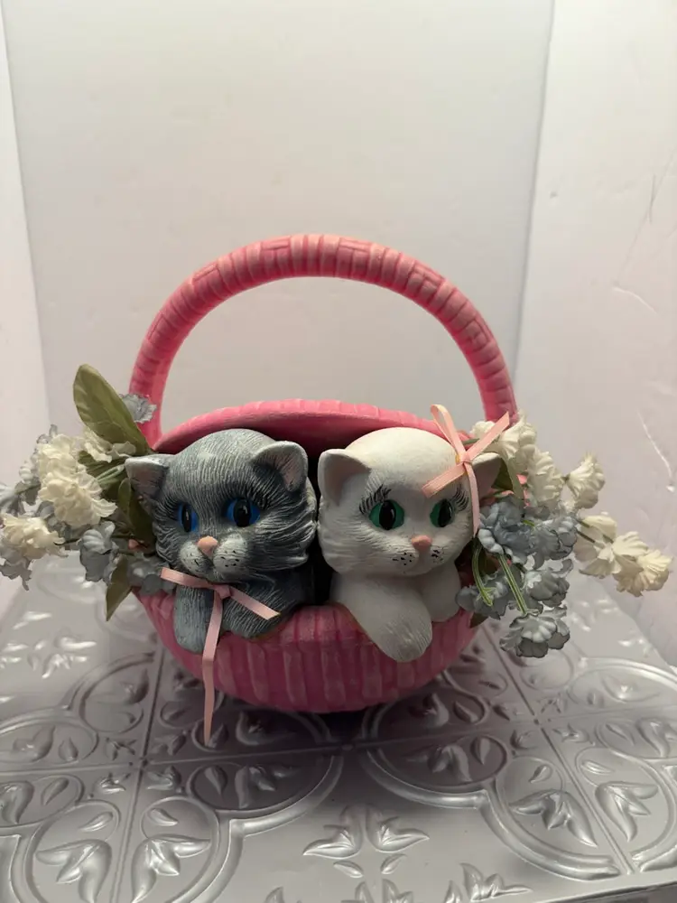 Love them so cute together and vary well done for the cat lovers in us all no chips or cracks and you can change the flowers to spruce them up to match your season decor so cute