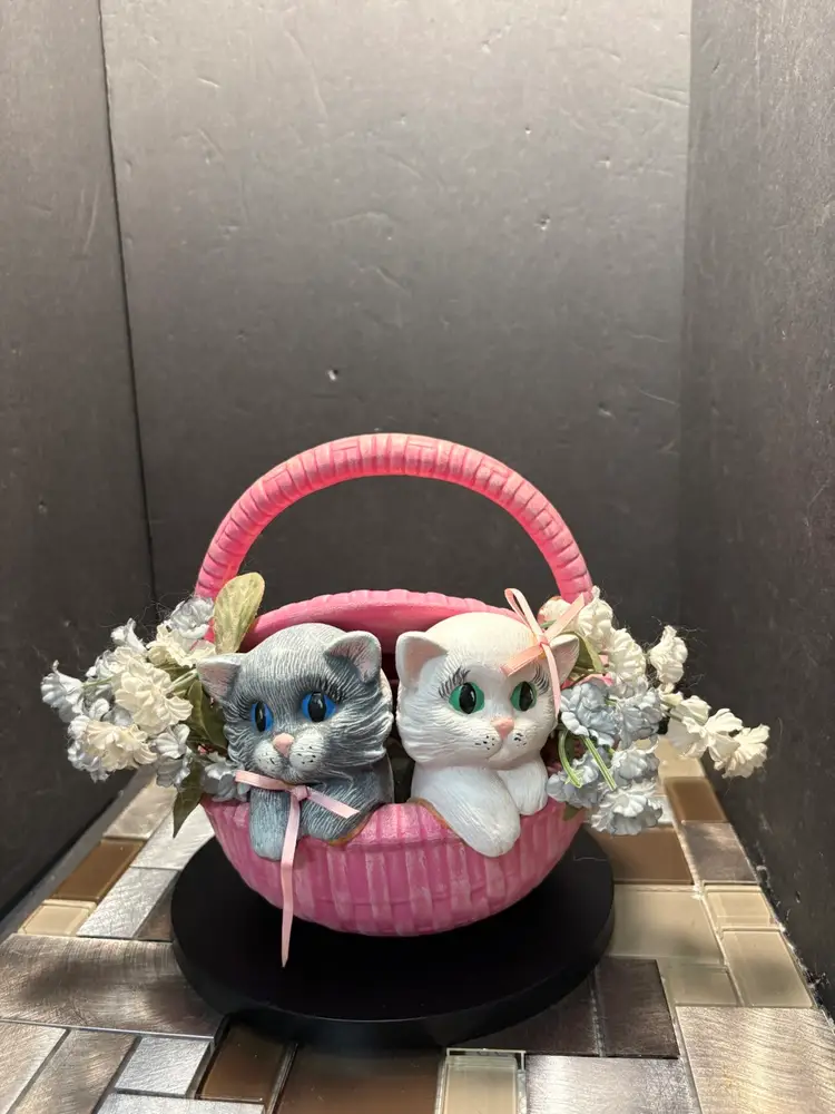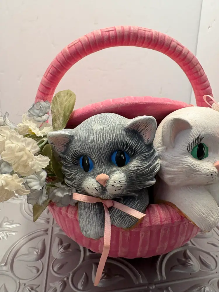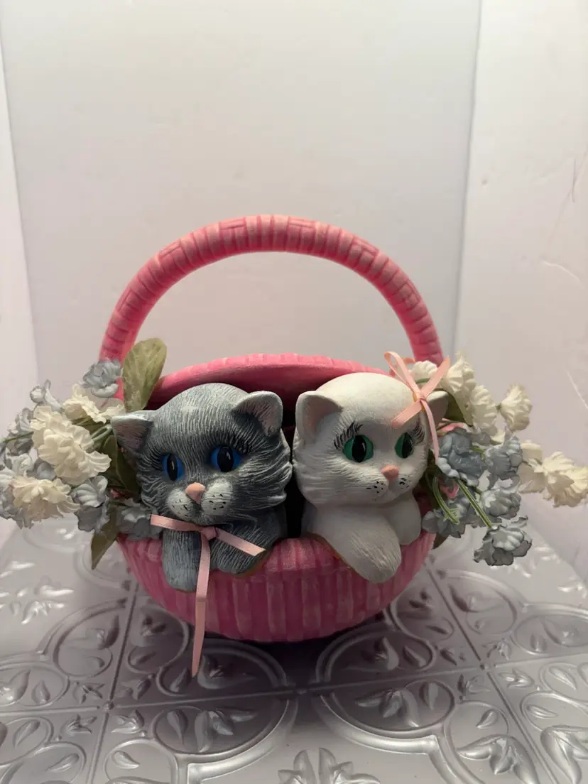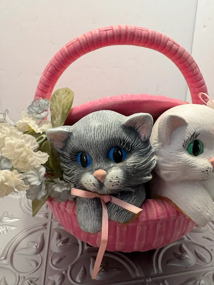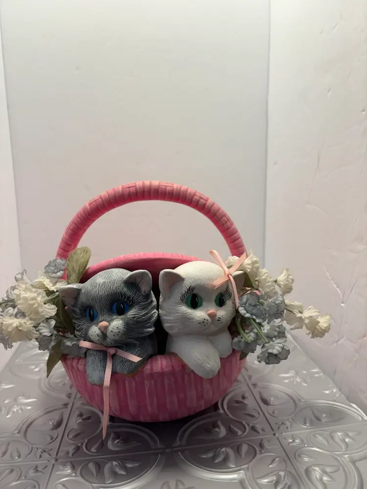 Love them so cute together and vary well done for the cat lovers in us all no chips or cracks and you can change the flowers to spruce them up to match your season decor so cute
