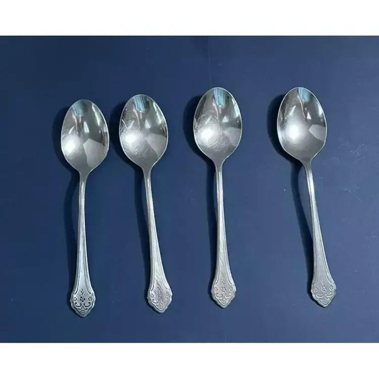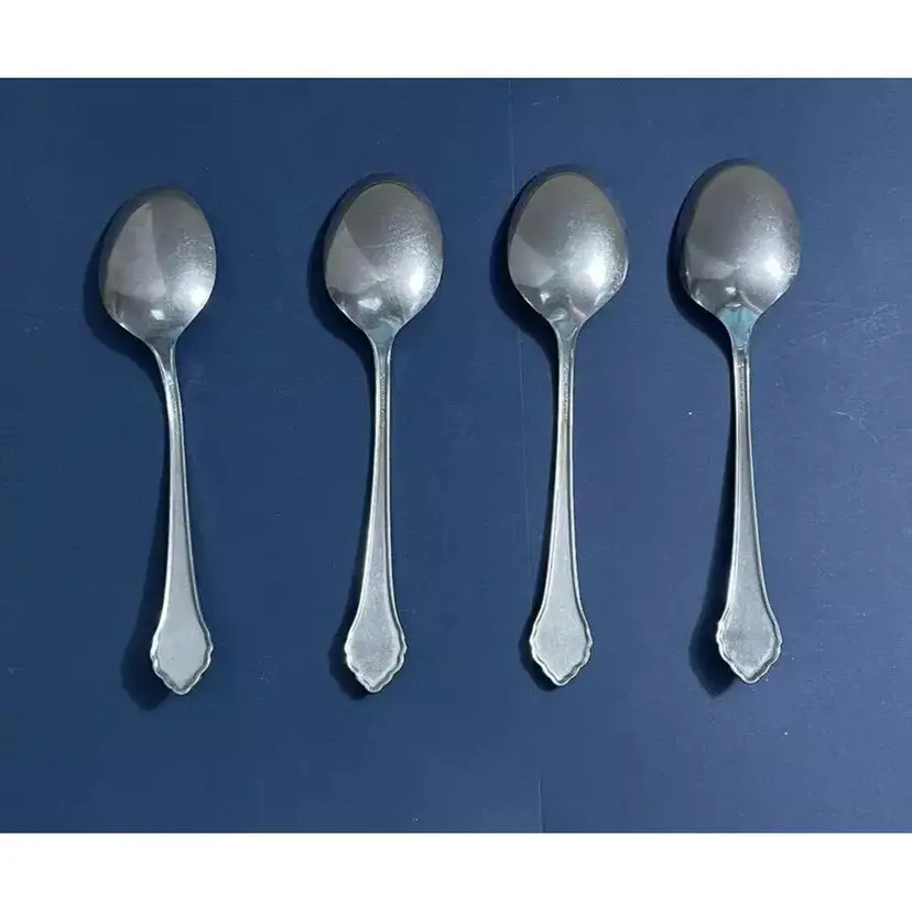 Vintage Oneida Profile Flatware Lakewood Pattern 4 Soup Spoons / Tablespoons Stainless Steel Lovely Pattern!