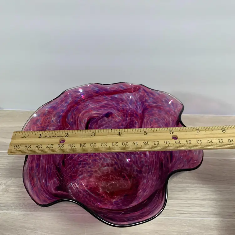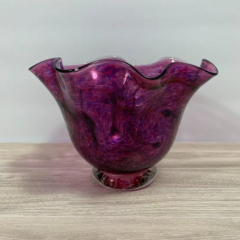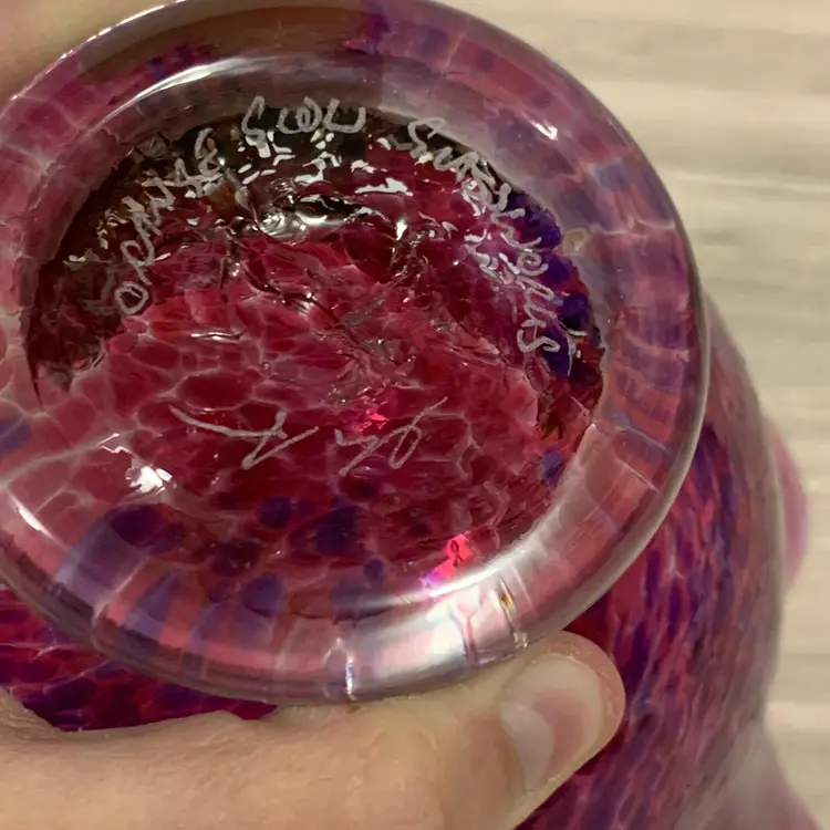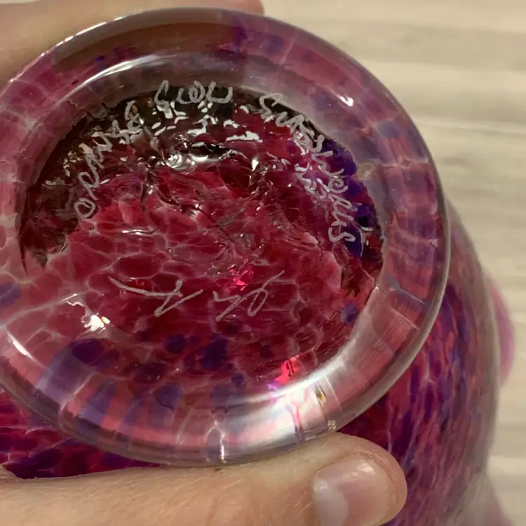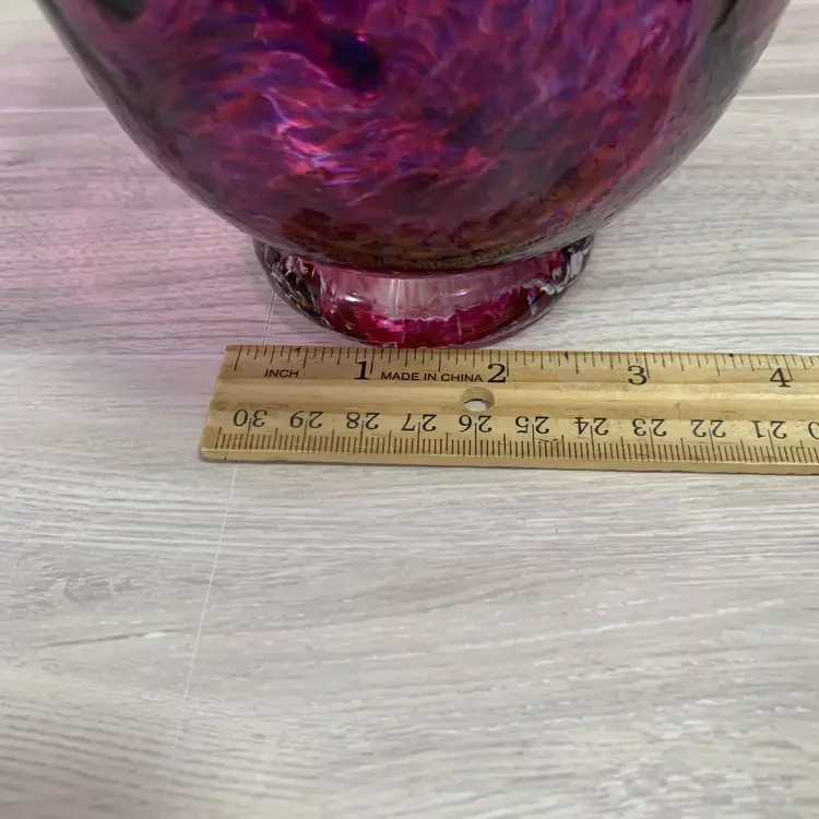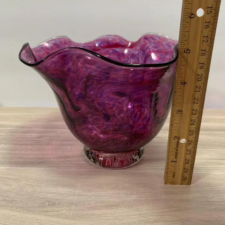 Vintage Orange Glow Glassworks Signed Fuchsia Pink And Purple Ruffled Vase