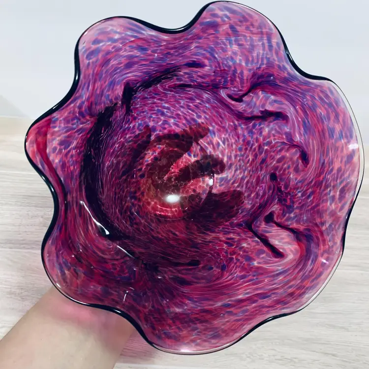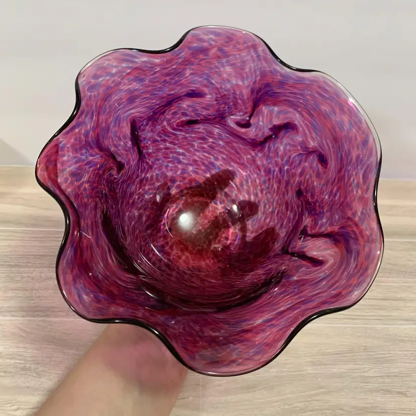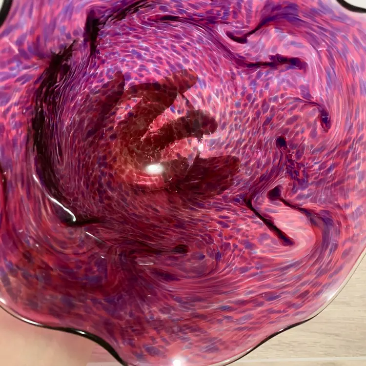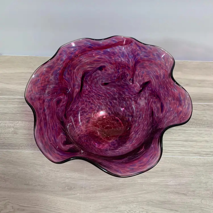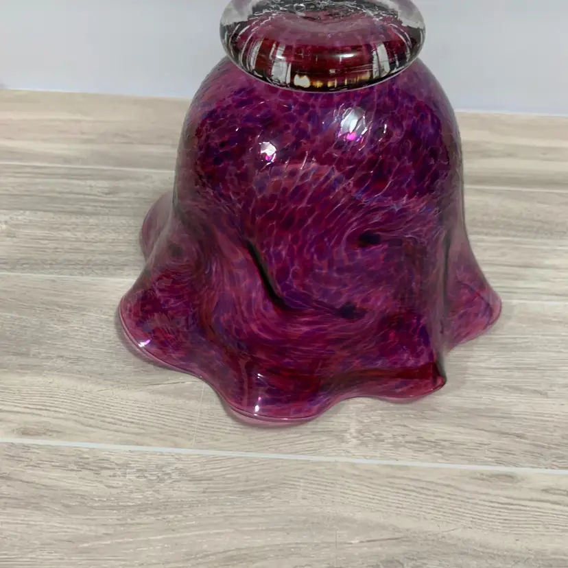 Vintage Orange Glow Glassworks Signed Fuchsia Pink And Purple Ruffled Vase