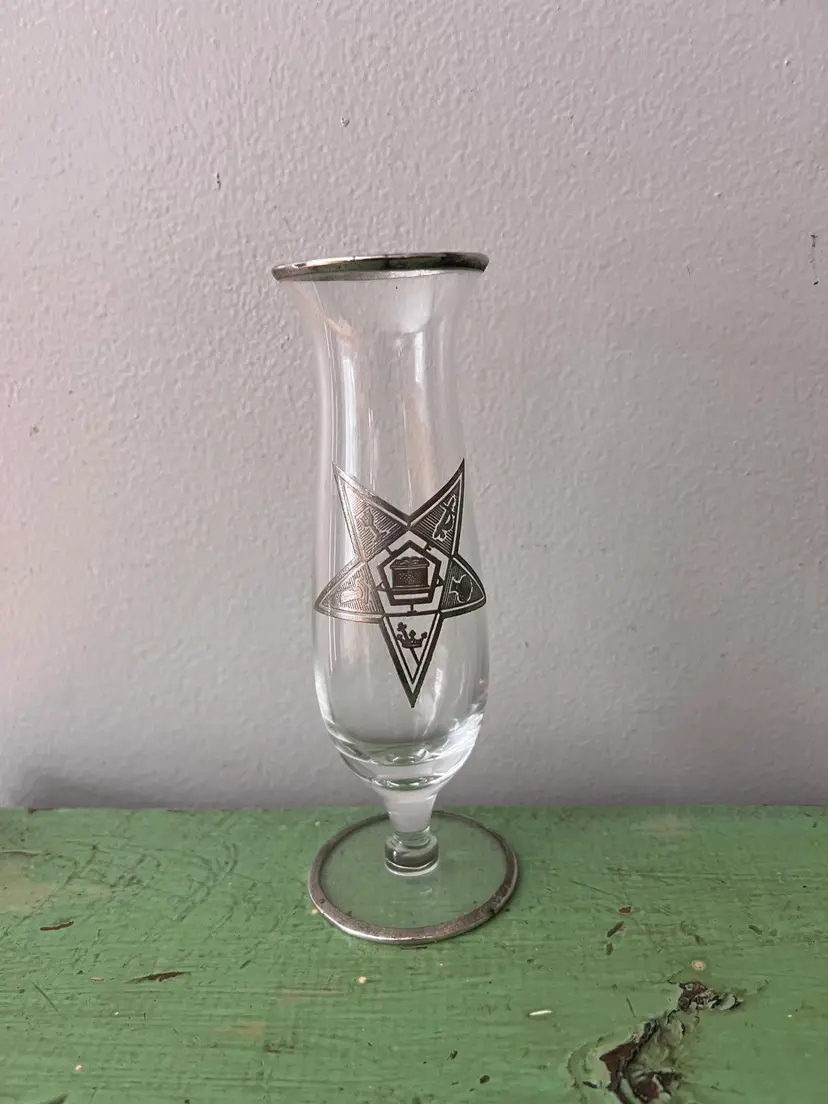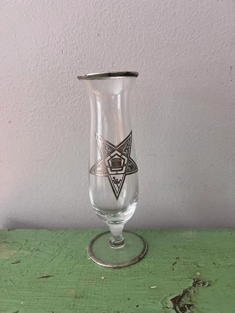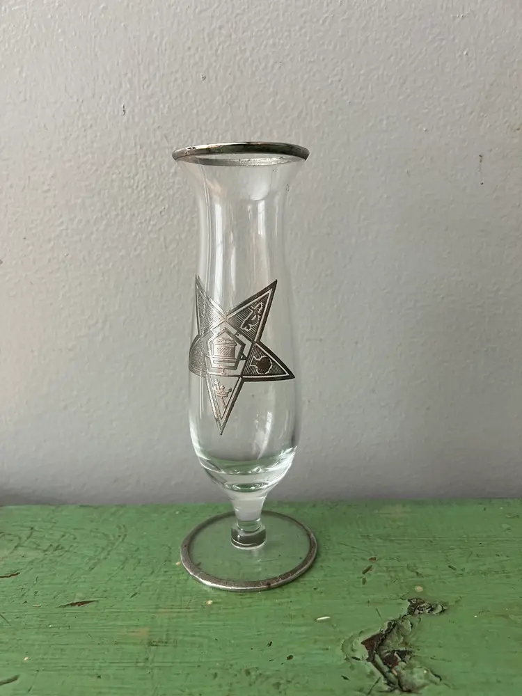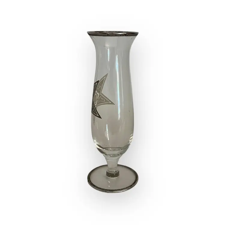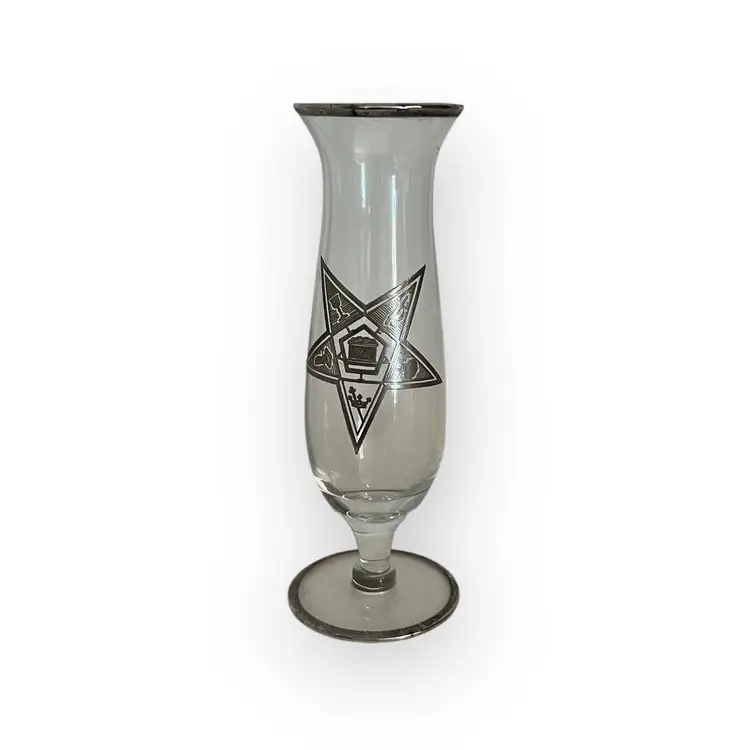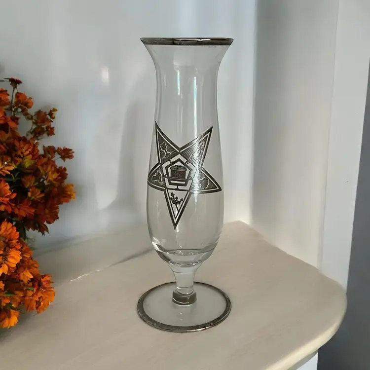 This original vintage Silver City Glass piece features the Order of the Eastern Star symbol, a distinctive Masonic emblem. It's a must-have for collectors and enthusiasts. It is about 6.5 inches tall, could be used as a display piece or even a vase.
