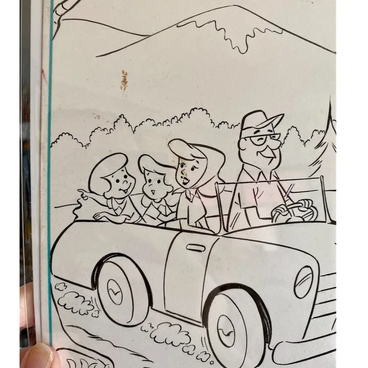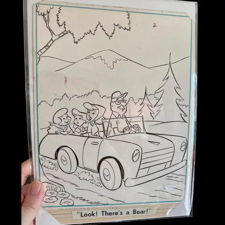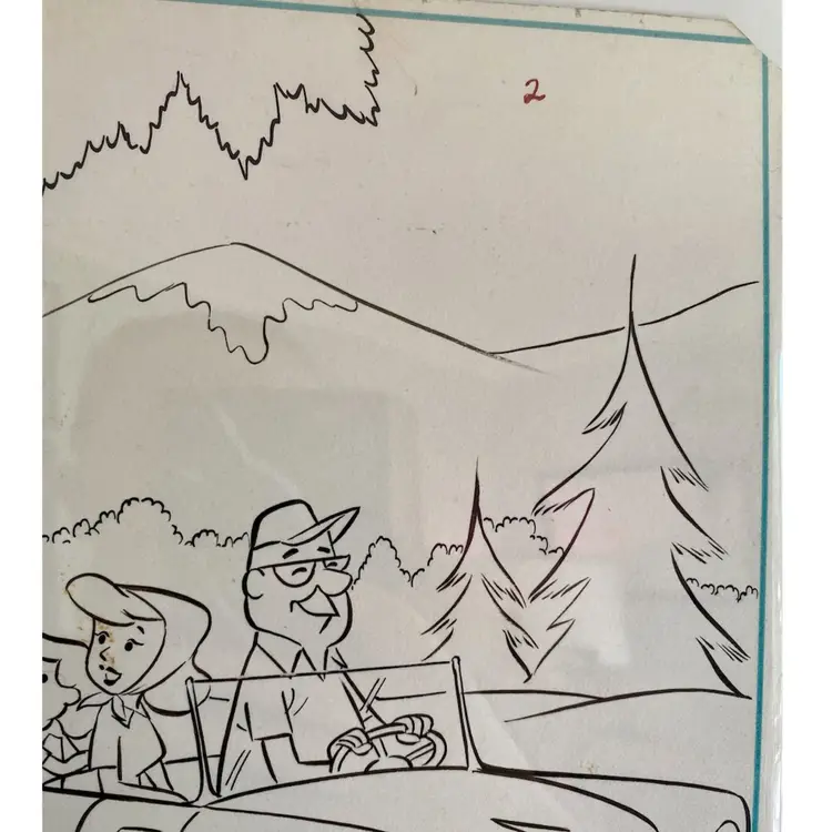 10”x7.25”. Original ink drawing, proof for a coloring book. The “2” written in red ink is showing which page this would be in the coloring book.