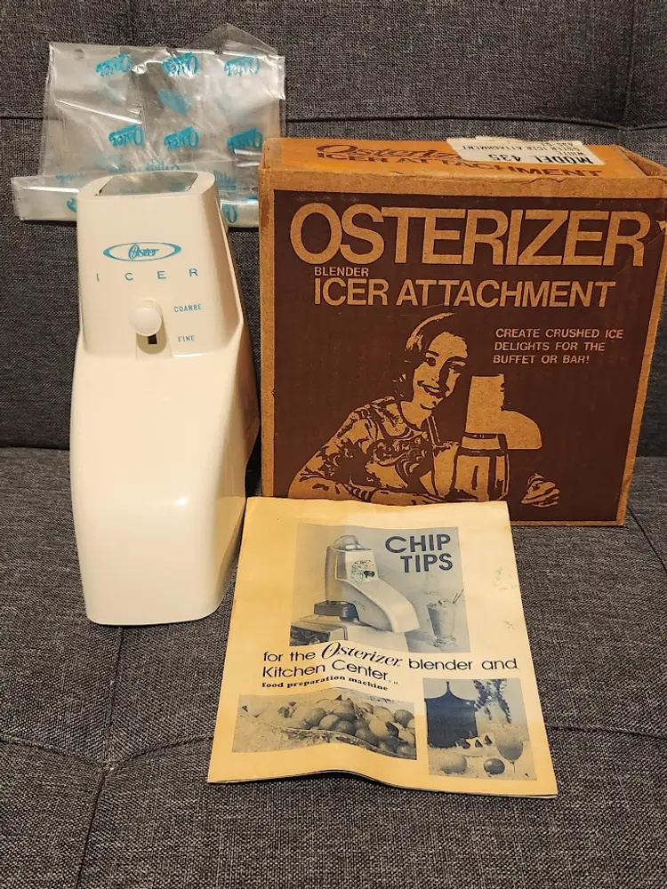 Add a retro touch to your kitchen with this vintage Osterizer blender icer attachment. Perfect for creating crushed ice delights for your buffet or bar, it's a must-have for any vintage appliance collector.