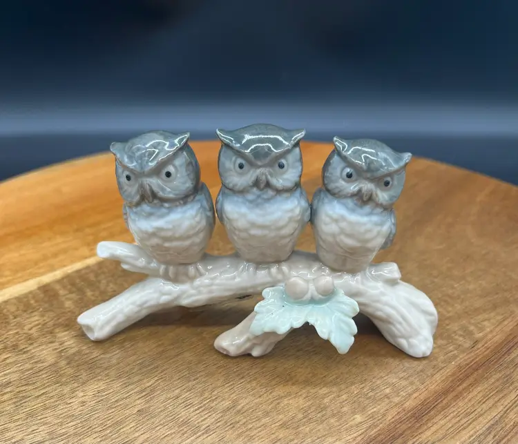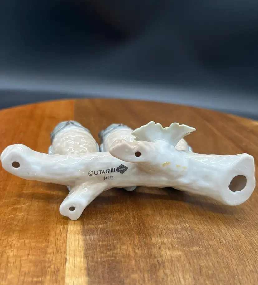Vintage Otagiri Ceramic Figurine - 3 Owls Perched on Branch Charming and whimsical, glossy glaze Otagiri sticker on bottom Made in Japan 1970s-1980s 3" tall, 5" long Excellent condition, no chips or cracks noted