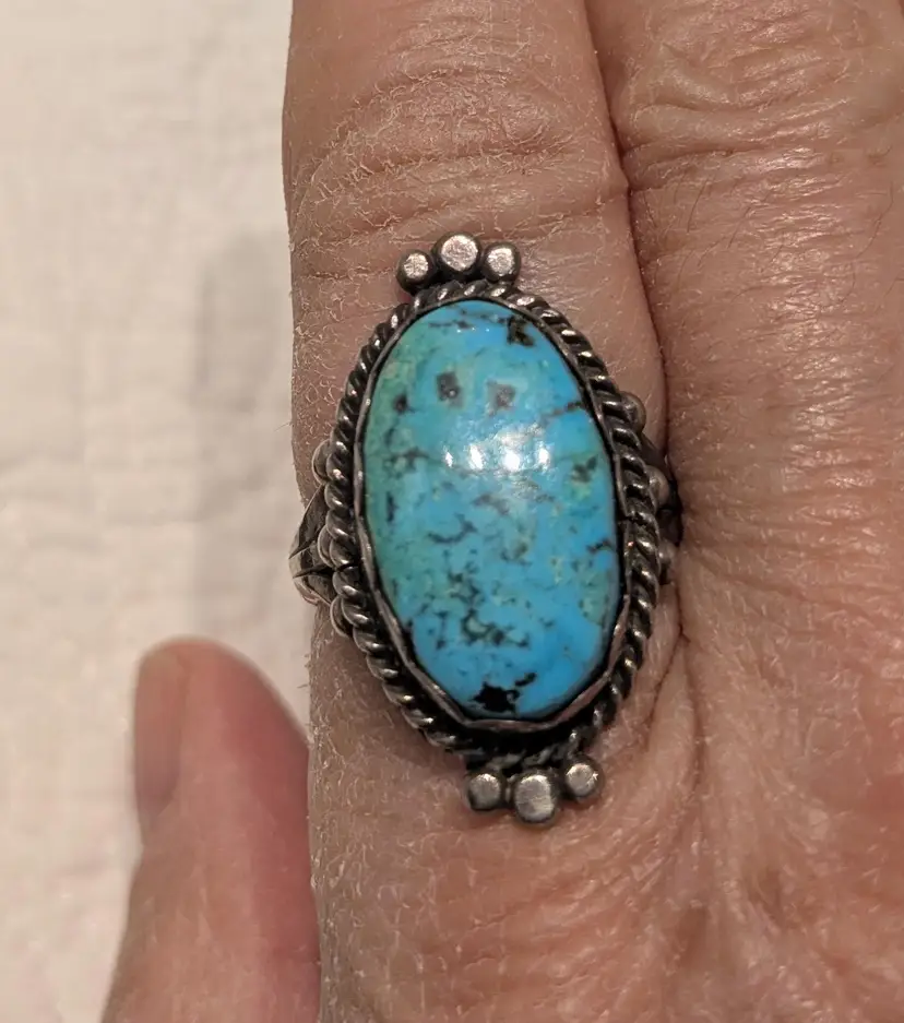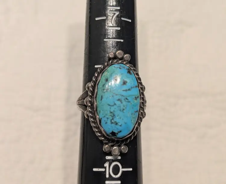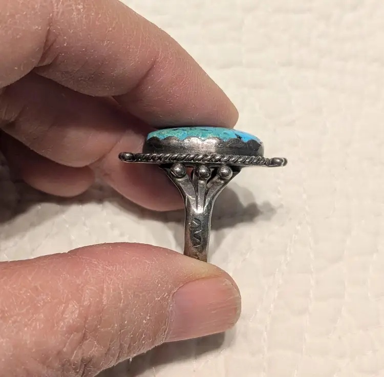 The front face of this ring is 1-1/4" long. Unmarked but acid tests as positive for sterling silver.