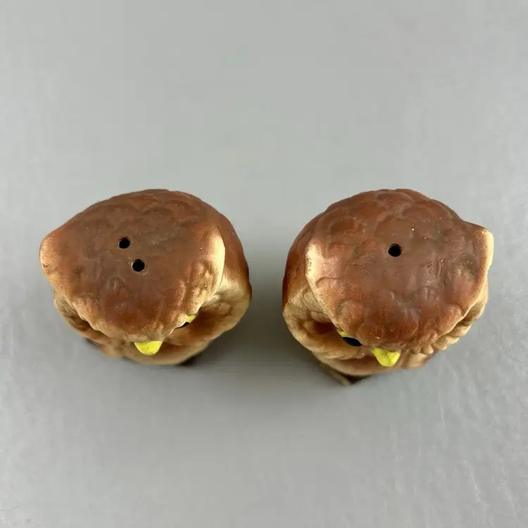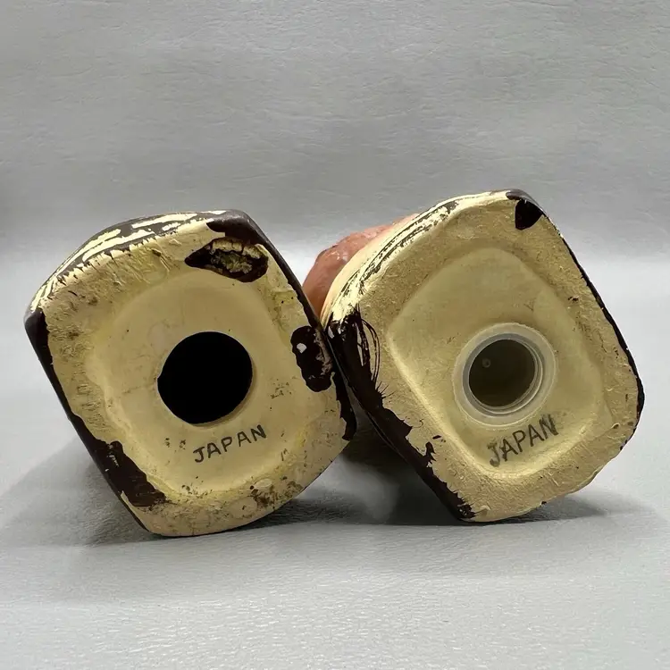 Good vintage condition. Both shakers have some paint loss. One is missing a plug. See all photos for a more accurate description.