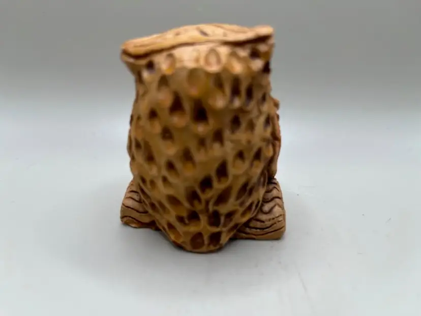 This whimsical sleepy owl is a collectible piece from The Critter Factory, often designed by Kathleen Kelly. Measures 3 inches tall.