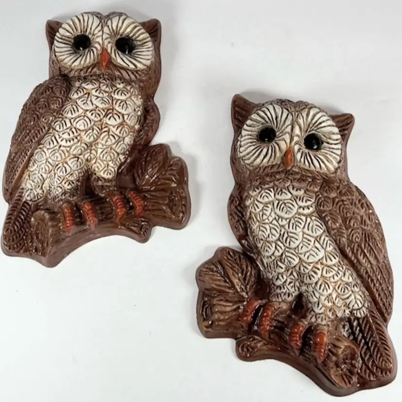 HOMCO Pair (2) Vintage OWLS Wall Hanging DECORATIVE HOME DECOR - VGC 🦉.