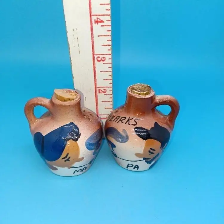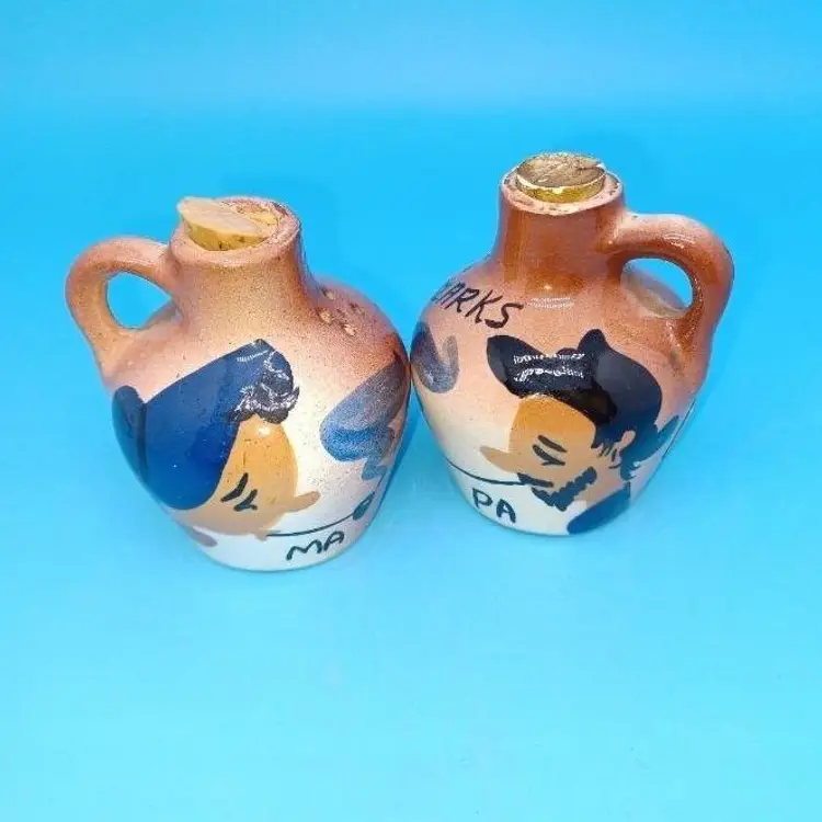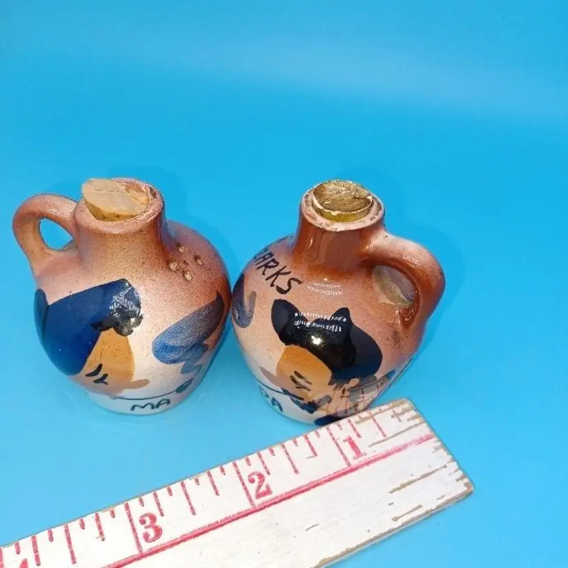 little moonshine jug salt and pepper shakers. Measure approximately 2 in tall please see all pictures as they are the best description all items from a smoke-free home with pets experienced fragile Bottoms are blank.