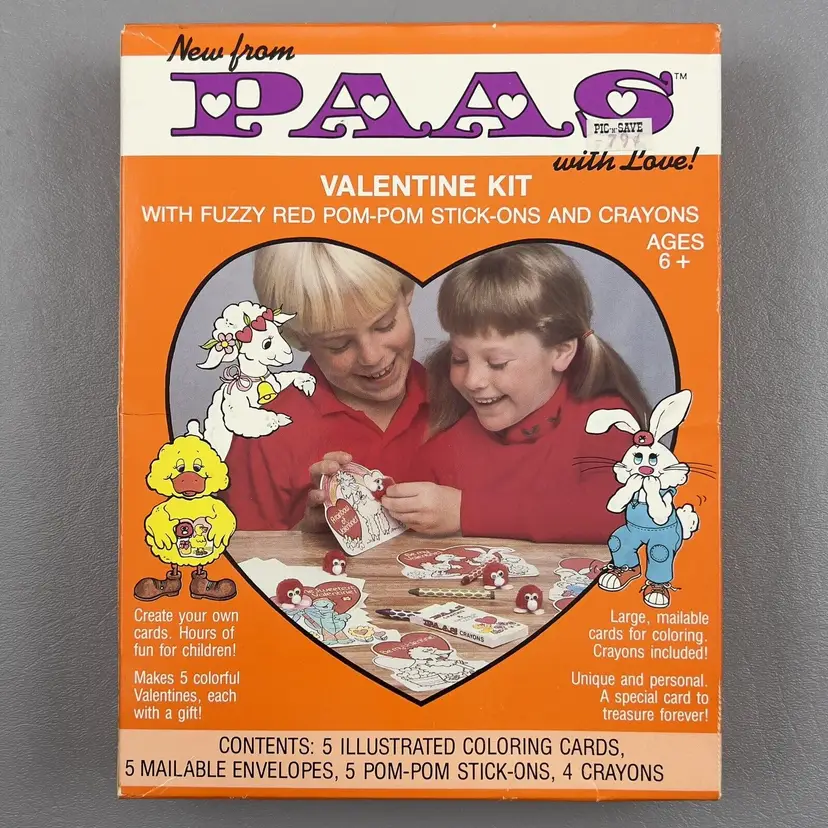 Vintage PAAS Valentine Kit 1985 USA New Sealed Illustrated Coloring Cards