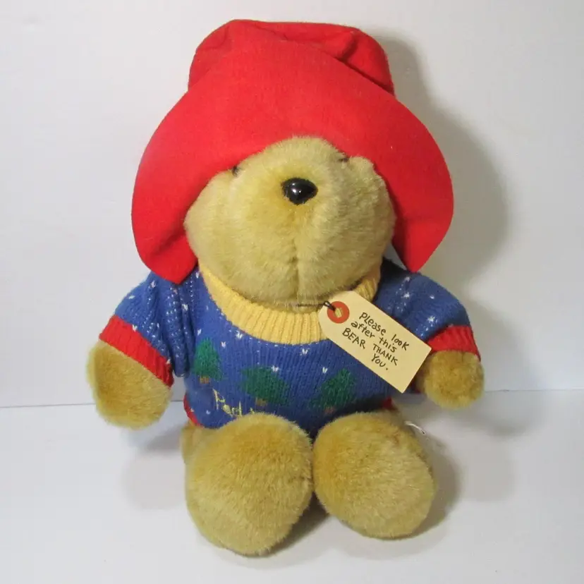 This adorable teddy bear is in good condition, it is about 16" when laying flat.