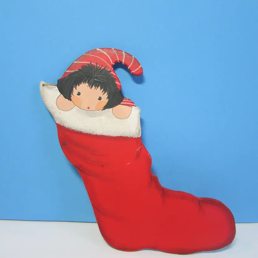 This adorable piece has some wear, still cute to hang and display. It is about 9 1/2" x 6". This is shipped from a smoke free home. Thanks for looking!