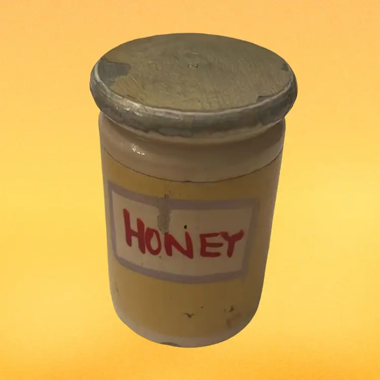 Beehive is 4β tall, honey jar is 2.5β and bee is 1β.