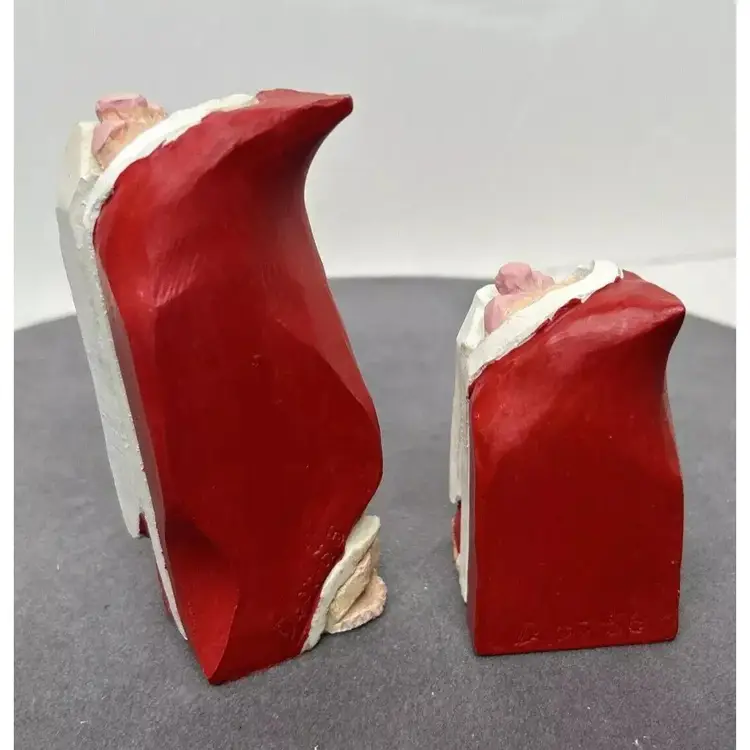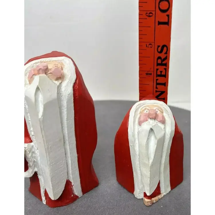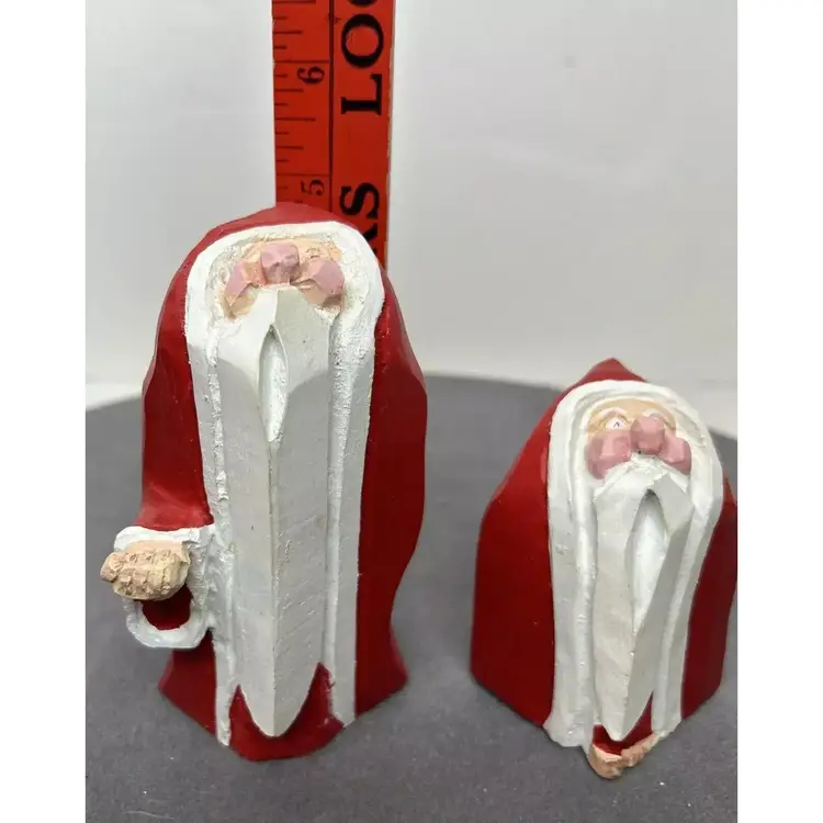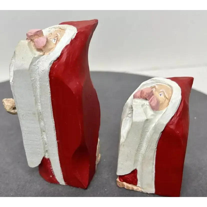 Vintage Pair Department 56 Barefoot Santa Claus Carved Wooden Figurines, these in excellent vintage pre-owned condition, with NO chips, cracks or repairs, however the taller figurine is missing his "shoes". Please review all pictures for proper assessment of its excellent vintage pre-owned condition. Please note that there is no original packaging.