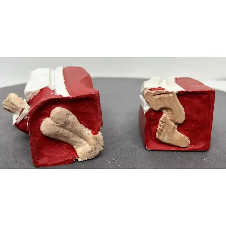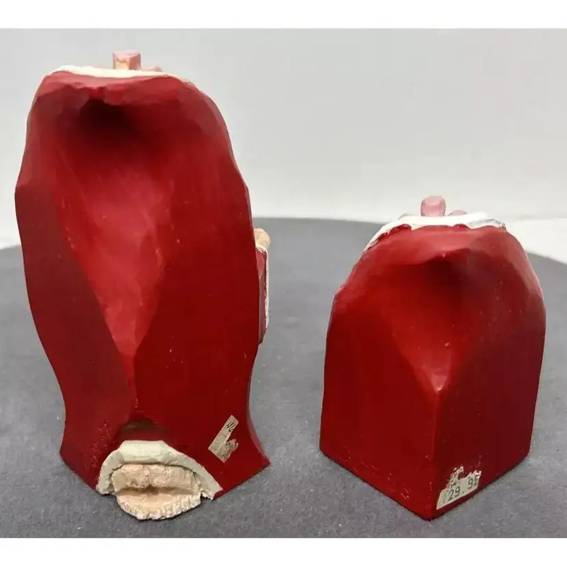 Elevate your holiday decor with the Vintage Pair of Department 56 Barefoot Santa Claus Carved Wooden Figurines. These charming wooden pieces, crafted with attention to detail, captures the spirit of Christmas in their hand-painted red attire and bare feet. Perfect for creating a festive ambiance in any space, these collectibles brings a touch of whimsy and tradition to your seasonal celebrations.