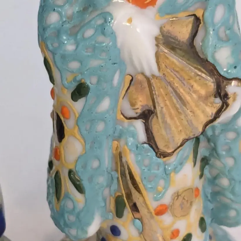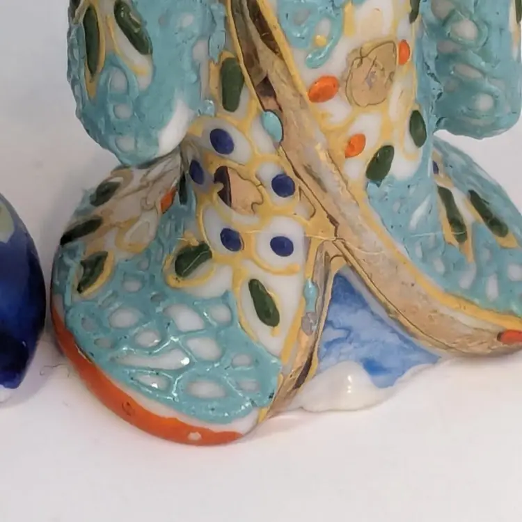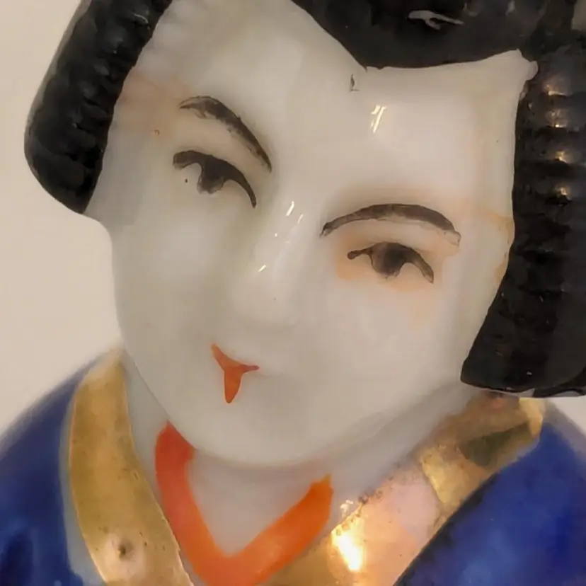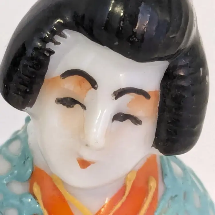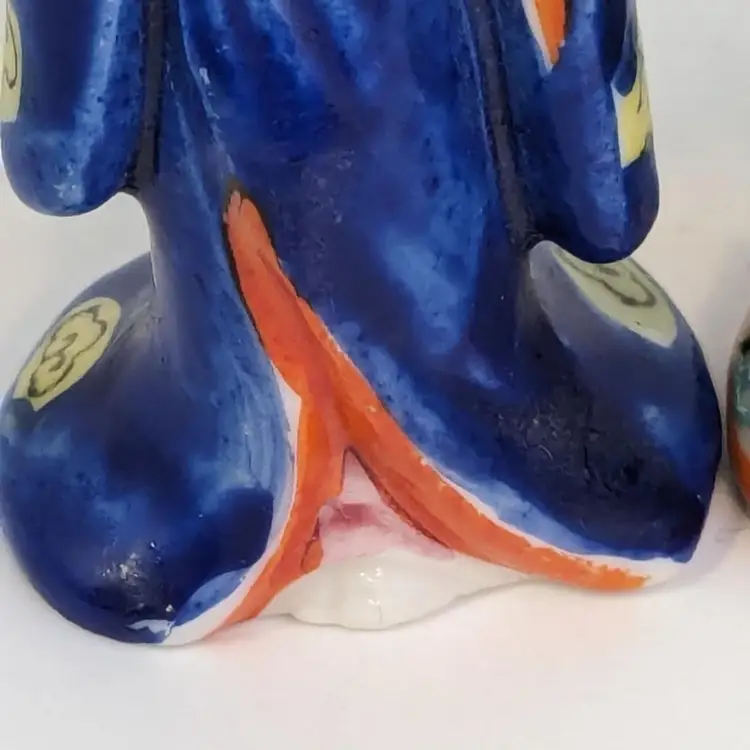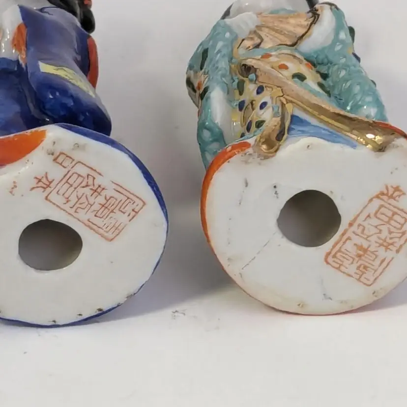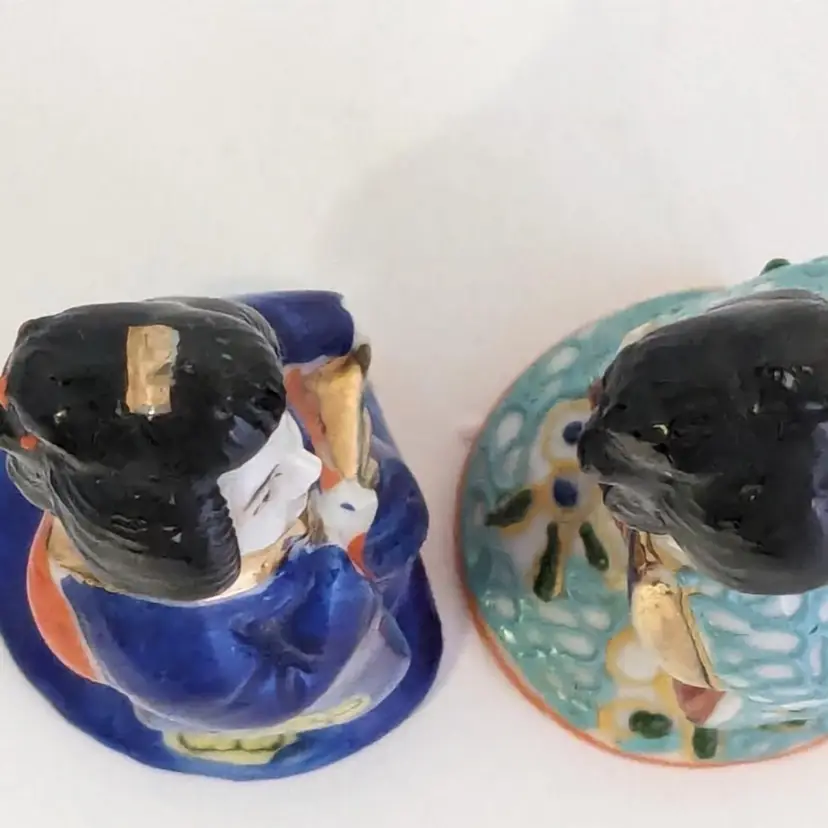 Wonderful set of two geisha girls are in good condition with no chips or cracks. Small moriage details. Measure 3 1/8" in height.