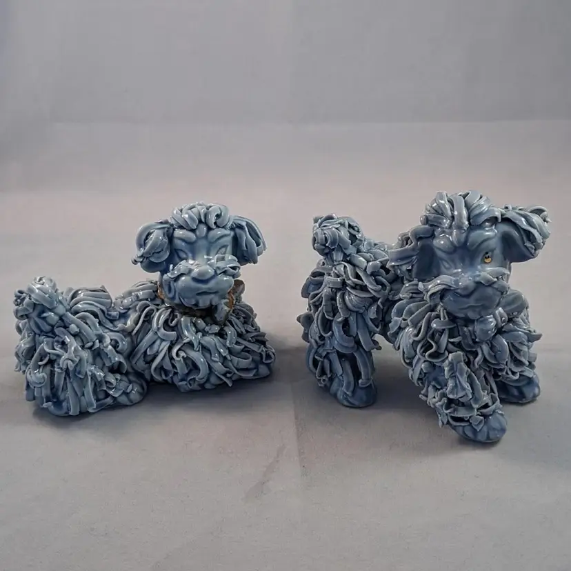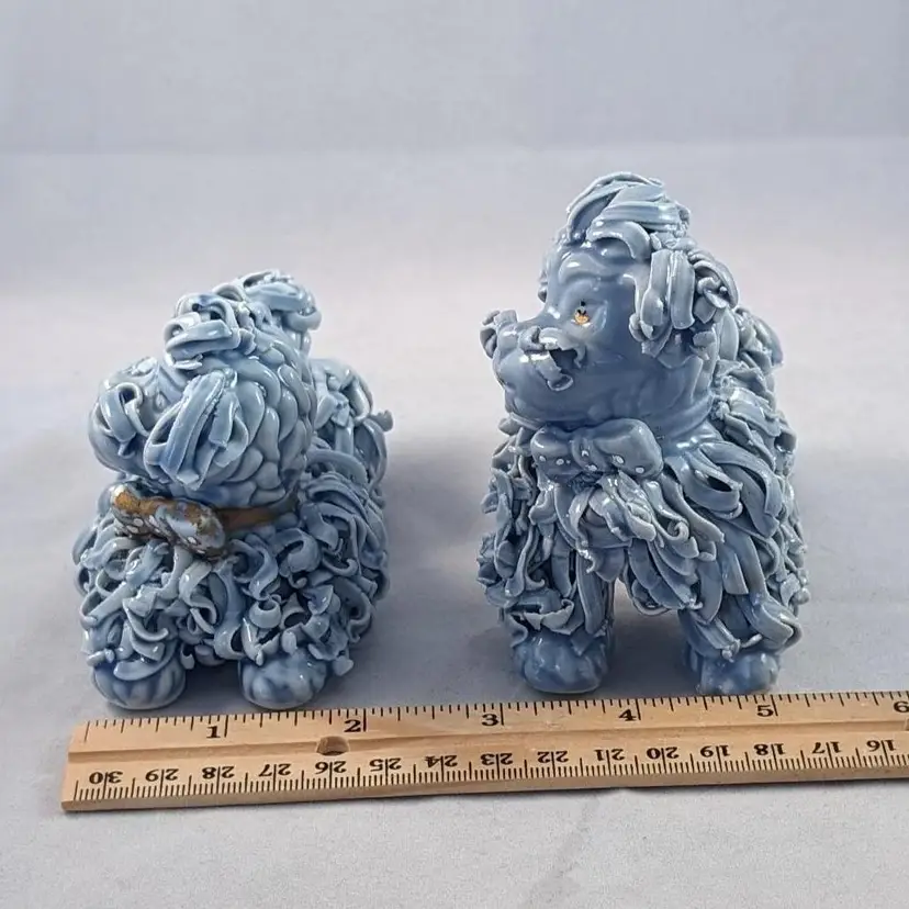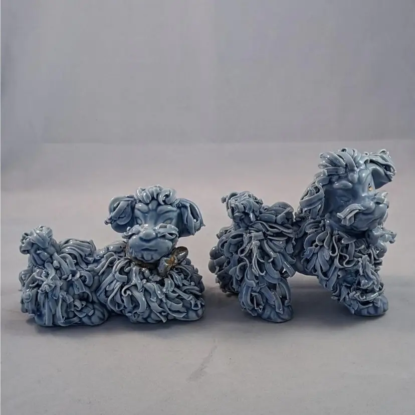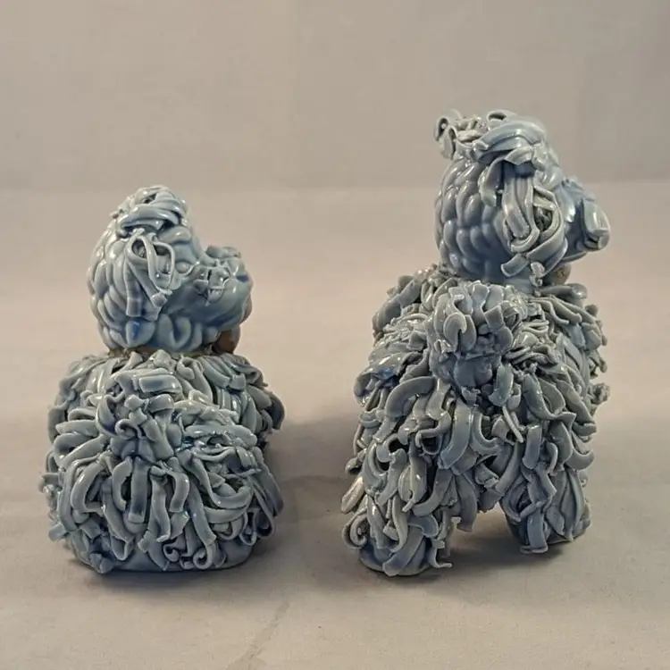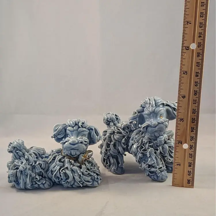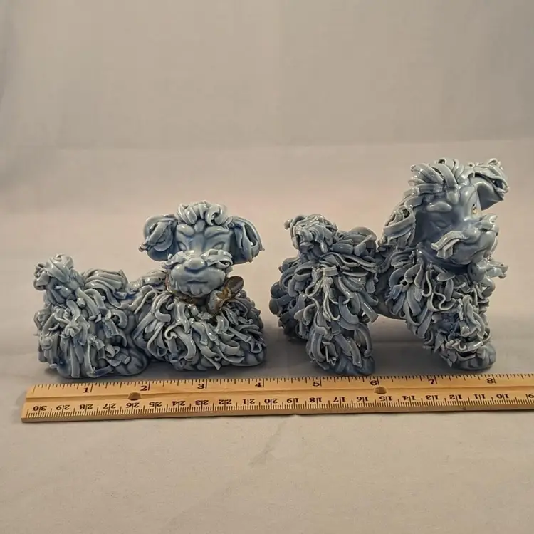 These spaghetti poodles are very cute! They have thick spaghetti hair. There is paint wear and and a few broken hairs (see pictures).
