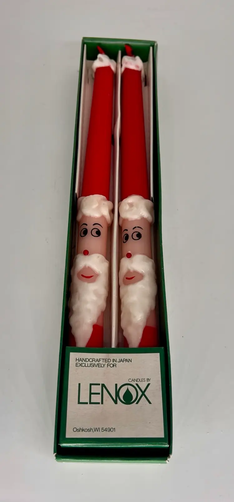 Pair of vintage Lenox Santa 12” tapers in box. Unused.