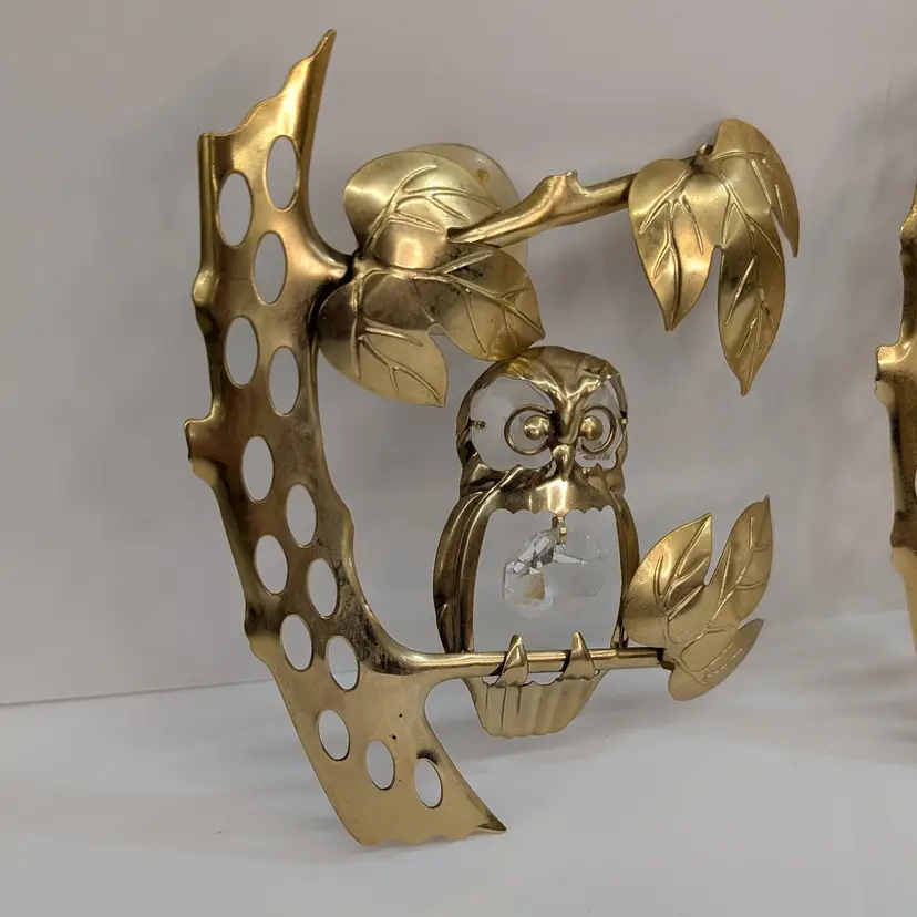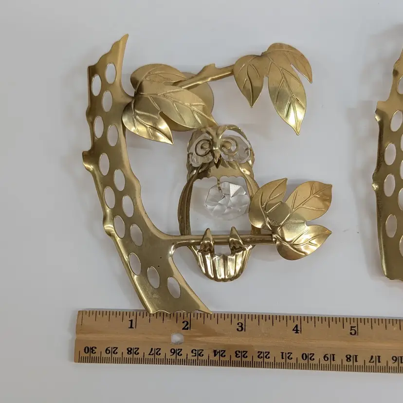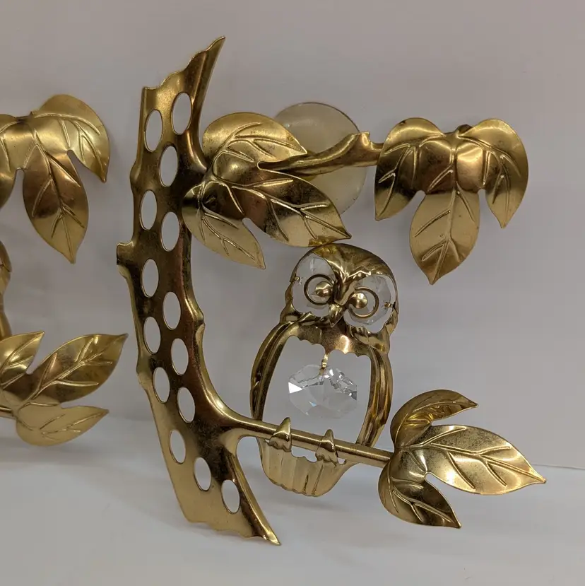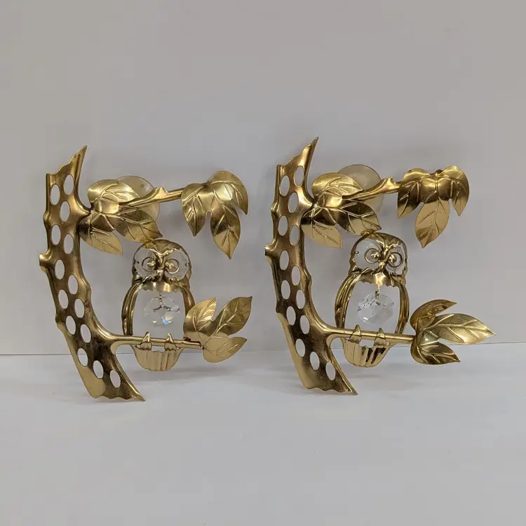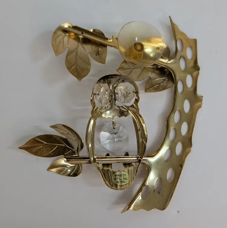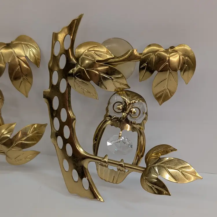 Set of two window hangers with glass crystals to catch the light. I think they would be great to hang on the wall and use as earring holders in the holes in the tree trunk. In nice, used condition but the suction cups are yellowed from age and could be replaced. Measurements ~ 4.5 x 5.5"