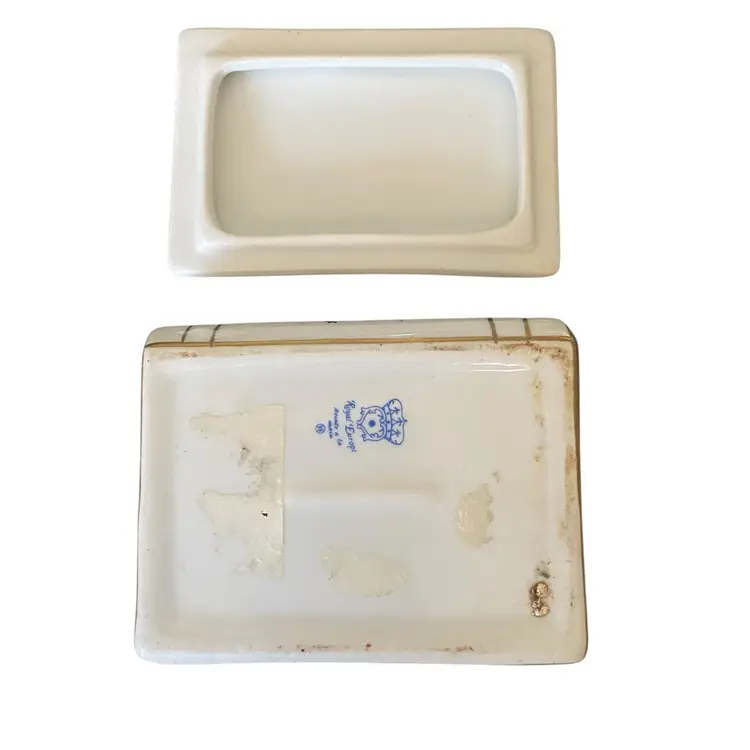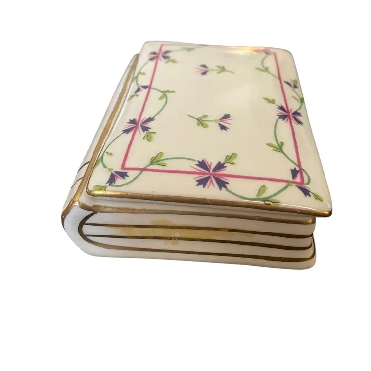 Vintage Paris Royal peint a la main Book Shaped Porcelain Trinket Box gold trim 4x3.75