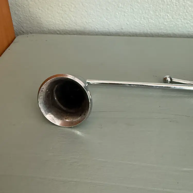 This classic accessory features a polished silver finish and a practical pivoting bell head that allows you to easily reach wicks in jars or deep pillars without the mess of blowing out hot w