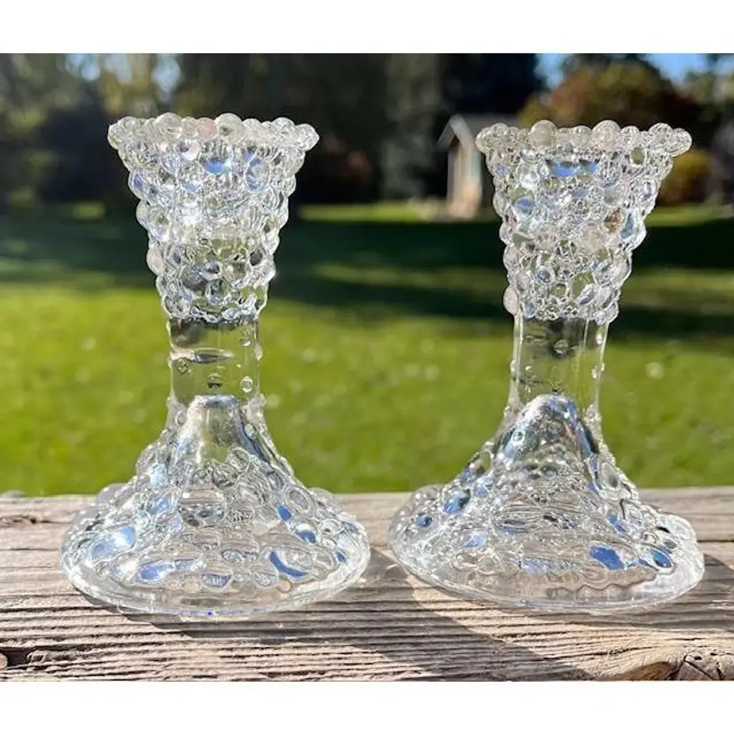 A pair of Vintage Partylite Candlesticks. They sparkle beautifully! Clear Glass. Tiny Bubbles.
