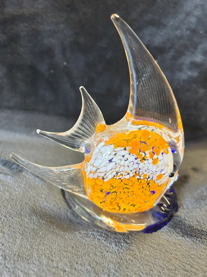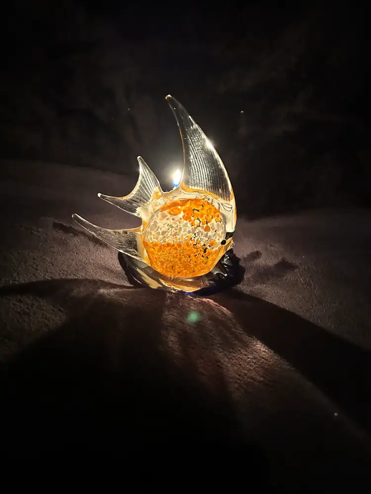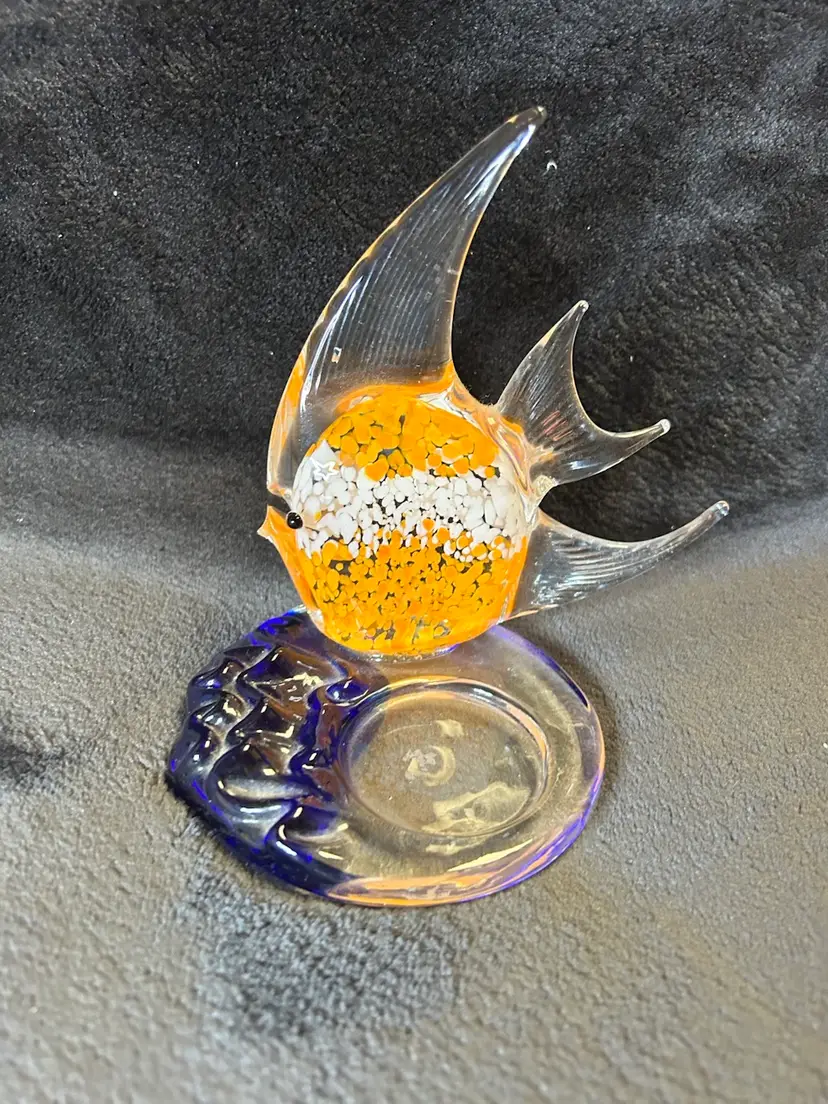 This is a vintage PartyLite glass fish votive candle holder with a tropical design. The candle holder features a fish subject and is made of glass. Perfect for adding a touch of tropical flair to your decor.