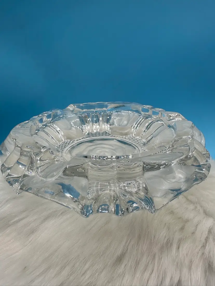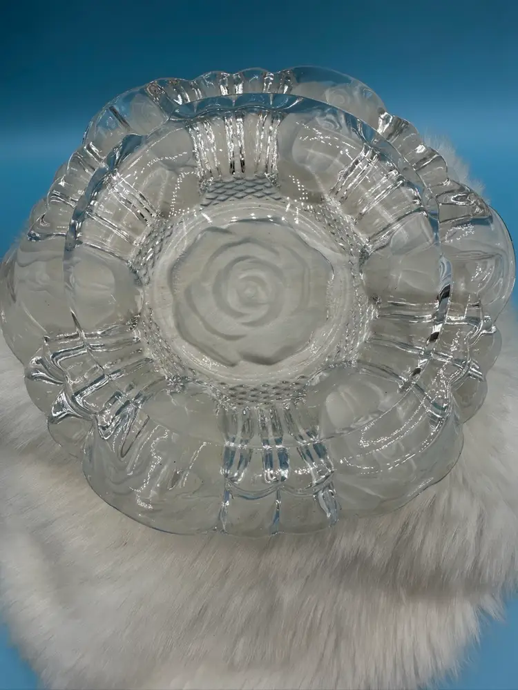 Good condition . It has a floral (Rose) design. Also it measures approx. 7'' across but the opening measures approx 4 1/2'. Can also be used as a trinket dish.