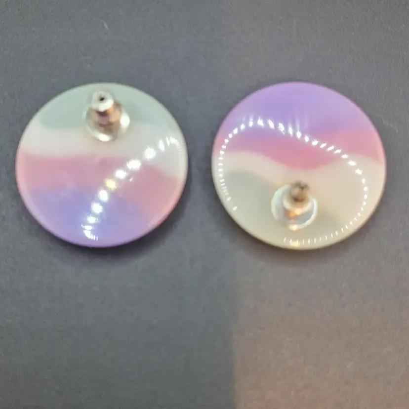 Add a pop of color to your look with these vintage earrings featuring a dreamy pastel ombre design. Perfect for retro lovers and those who adore unique accessories. Each earring measures approximately 1 inch in diameter. 💝 All items are packaged with care to ensure safe delivery. #nosadmail ✴️ Follow my Facebook page & IG for more curated vintage treasures! ⚡️ #MrEccentrics #vintagecurator #vintagestyle