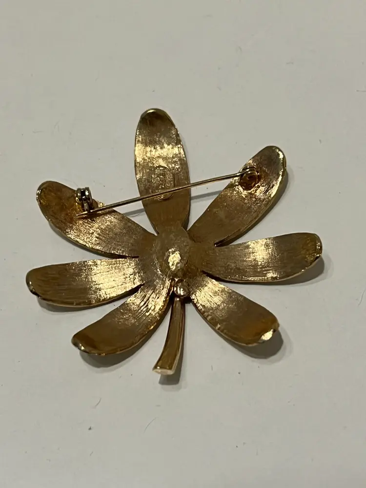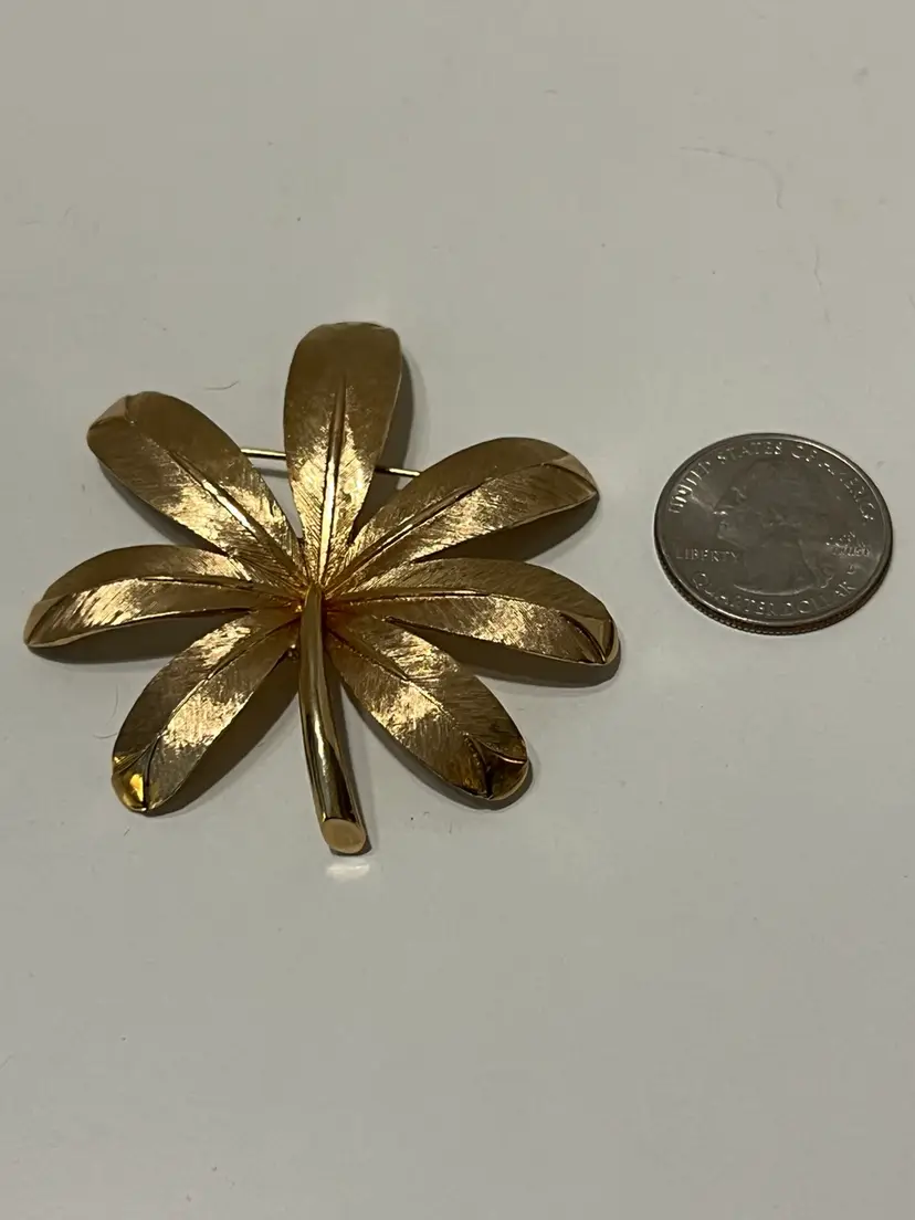 Vintage Pastelli Large Flower Leaf Gold Tone Textured Brooch. This brooch is a rare find ; it is an estate piece found in excellent condition. This would make a great addition to your vintage brooch collection. The accompanying photographs show a size comparison.