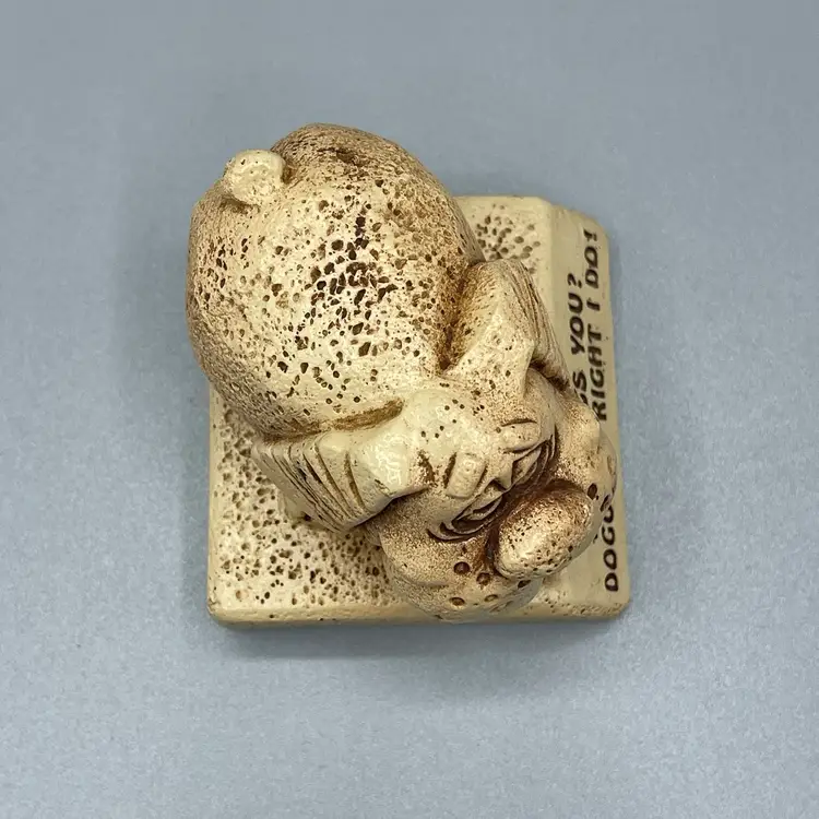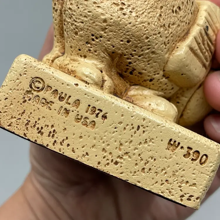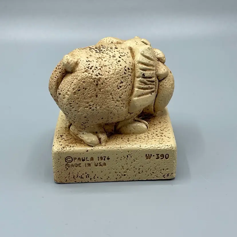No chips or cracks. Made from resin. About 3 inches tall and 3 inches wide.