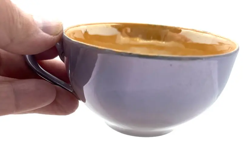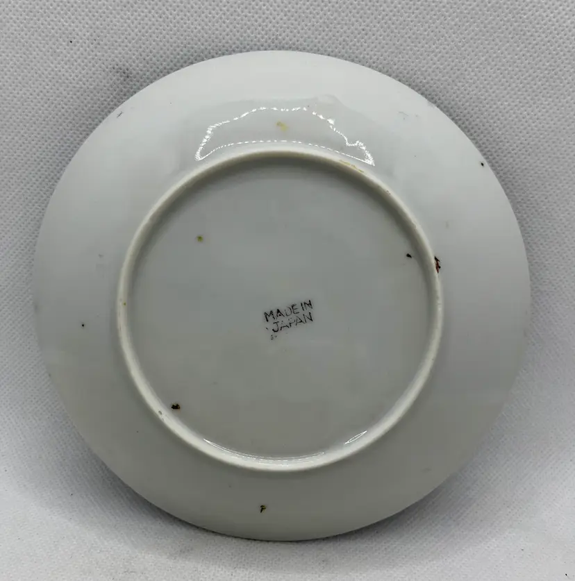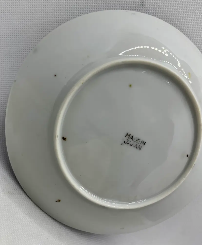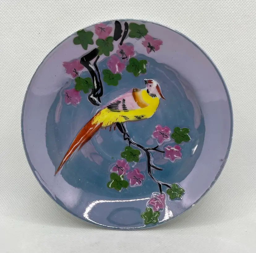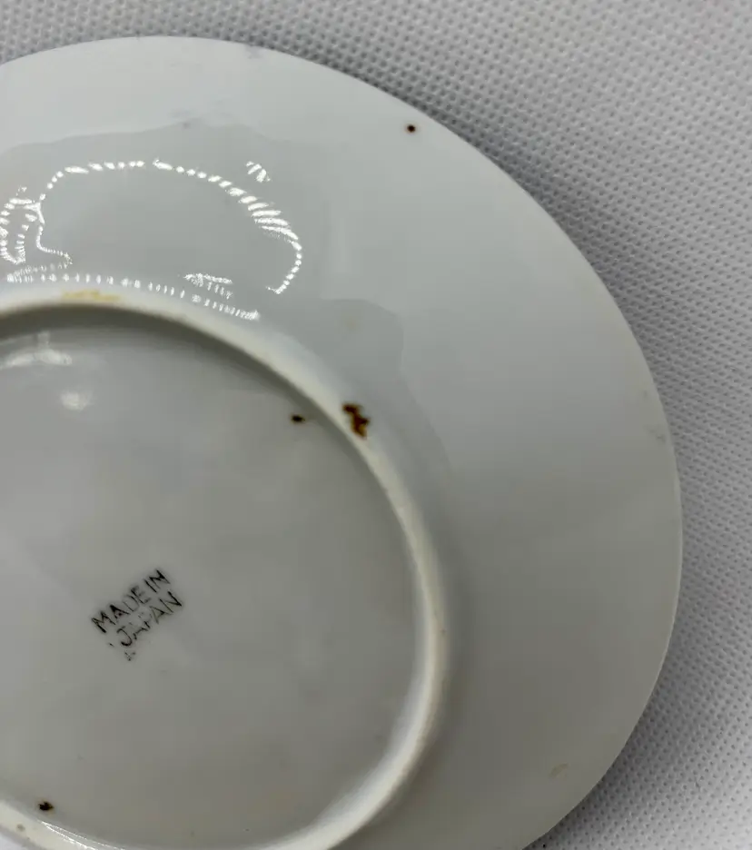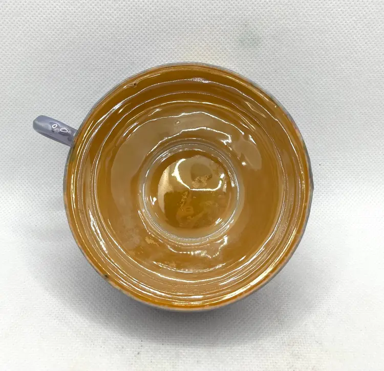 Vintage Peach Lavender Luster Pheasant Bird Pink Floral Japan Tea Cup & Saucer Hand Painted. Minor discoloration on back of plate & rough edges. One tiny chip on plate rim. See photos .