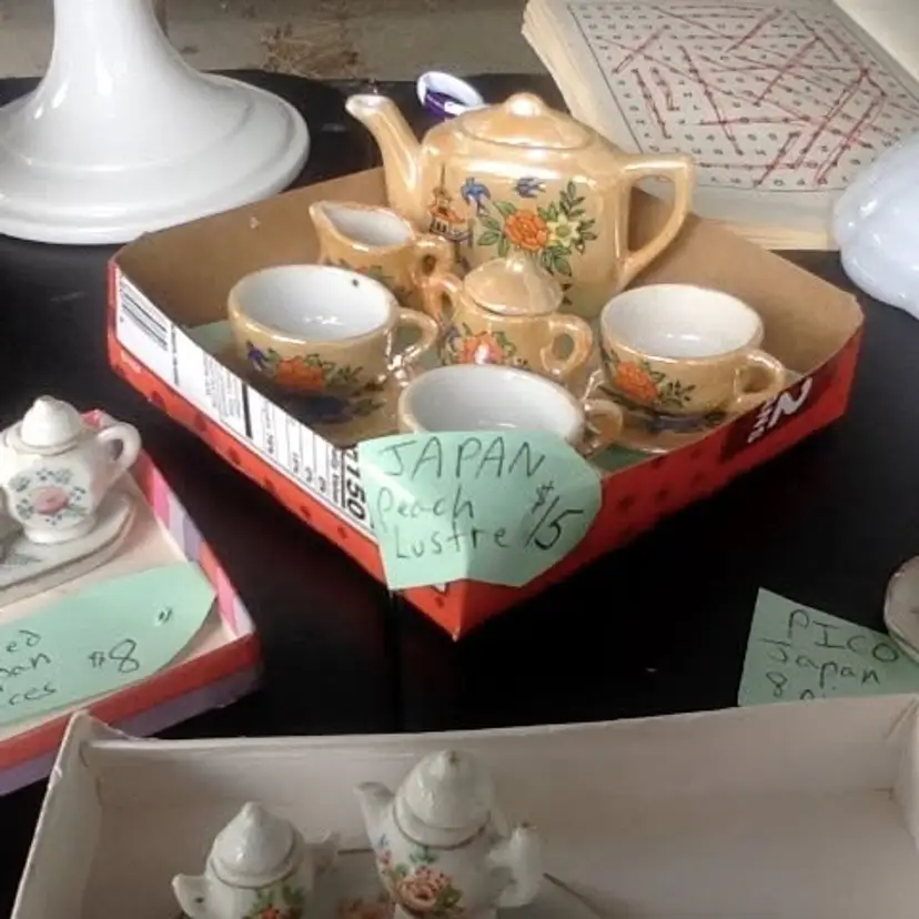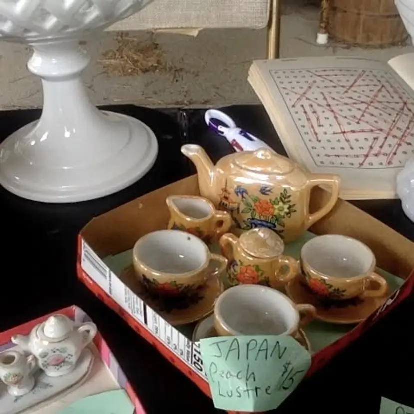 $15 Peach Lusterware JAPAN, 11 pieces, great condition, in original box.