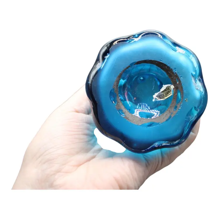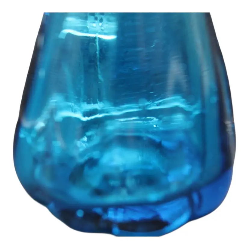 Vintage Peacock Blue Swung Glass Vase Made in Taiwan Retro Decorative Glass Mid Century 11” Tall, base is 3 1/4” in diameter. No chips or cracks.