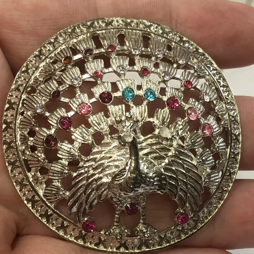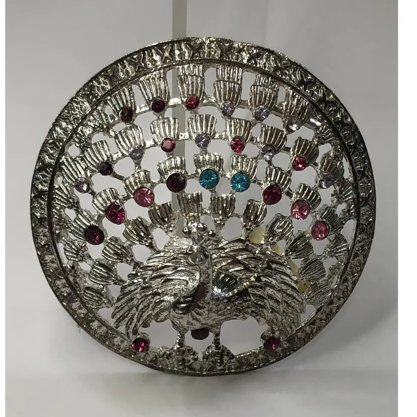 2.25" in diameter. I am not sure what this is supposed to be. Could be made into a pendant or pin. PLEASE NOTE: Does not have pin back or hook for pendant.