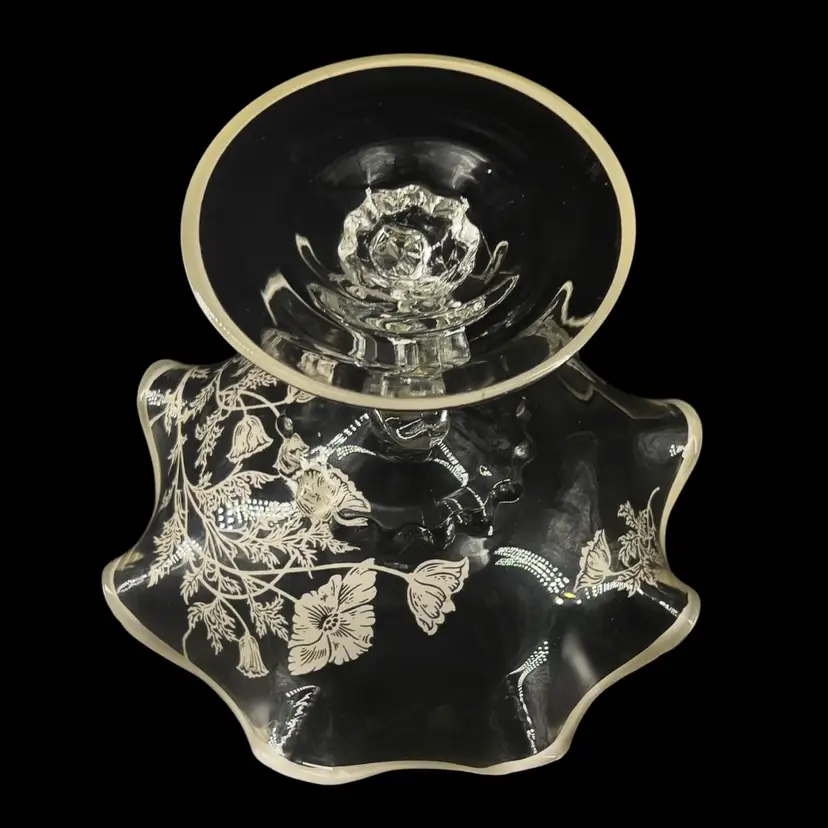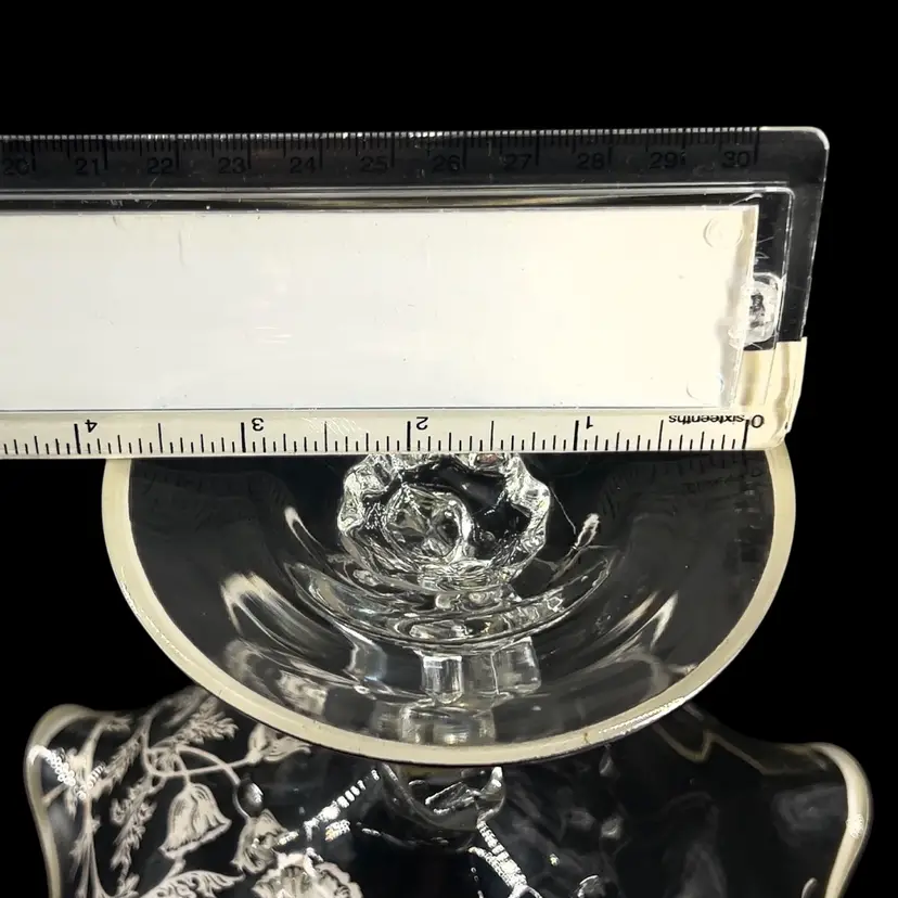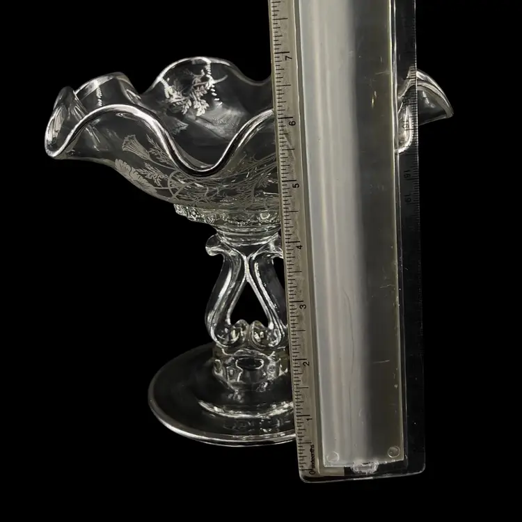 ๐ 6 1/4โ x 7 1/2โ ๐ Holiday Hosting ๐vintage age Wear & Tarnish may Present ๐No Chips or Cracks ๐ Review Photos for Best Condition Description ๐ Sold as Shown FUN FACT: Silver City often applied their overlay to "blanks" from major glassmakers like Cambridge Glass (e.g., the Caprice or Waverly lines).