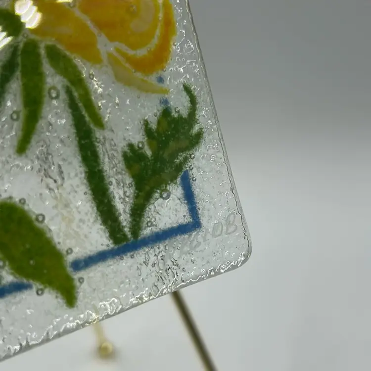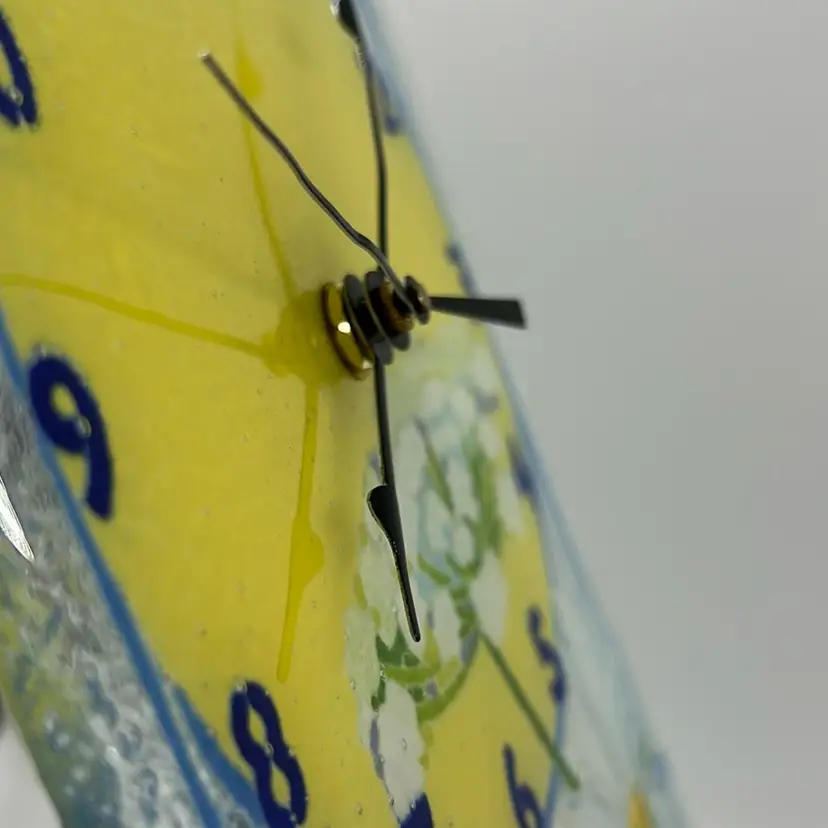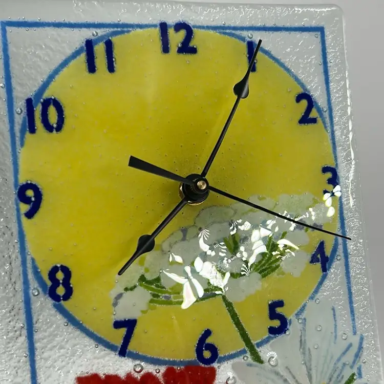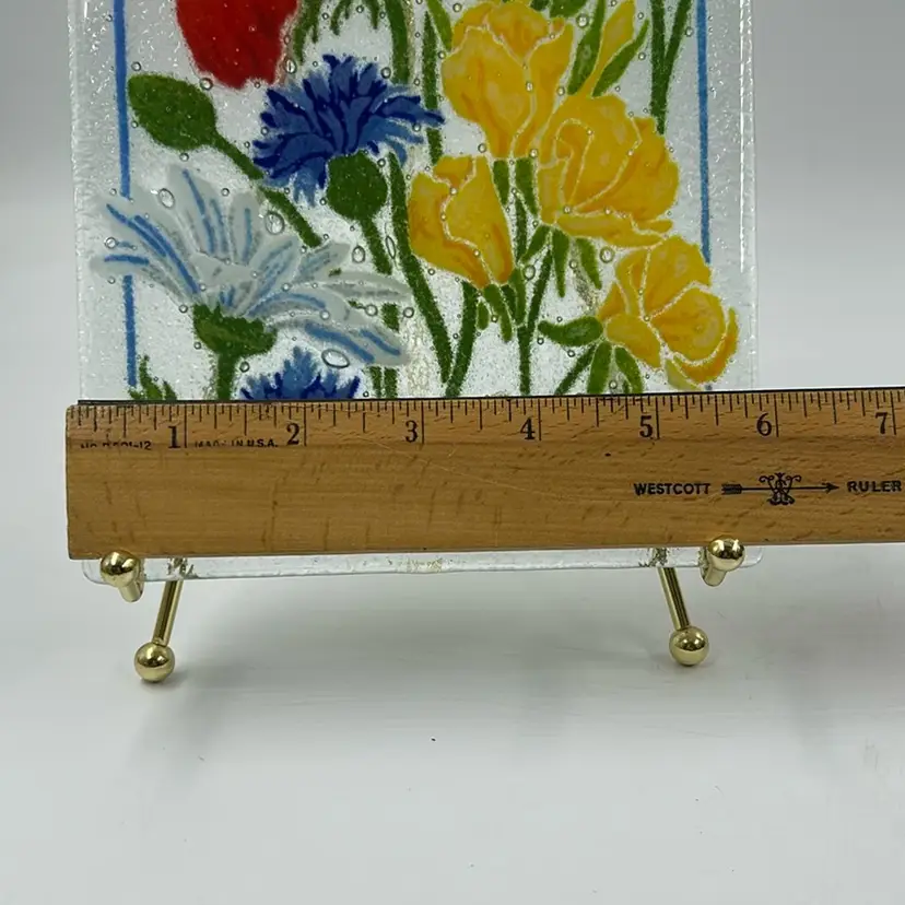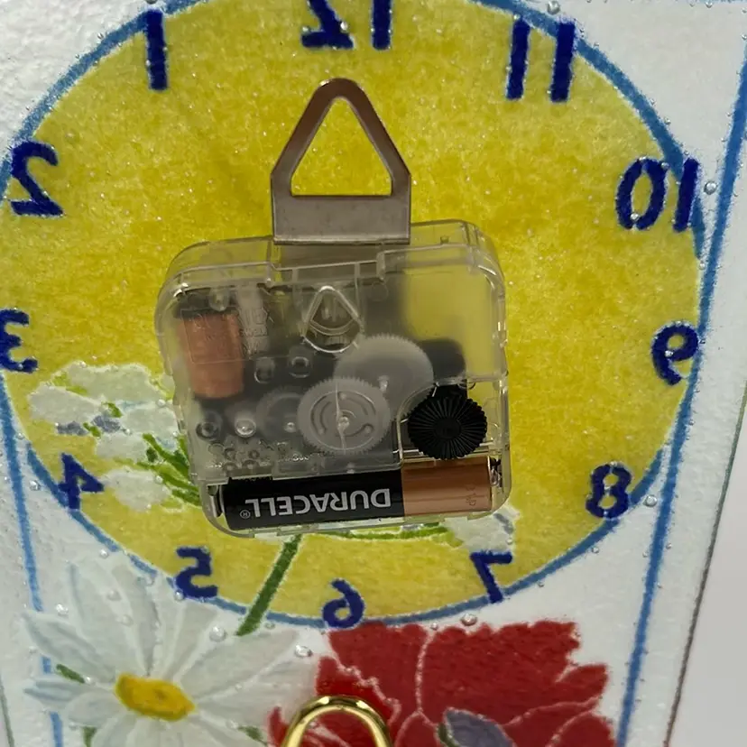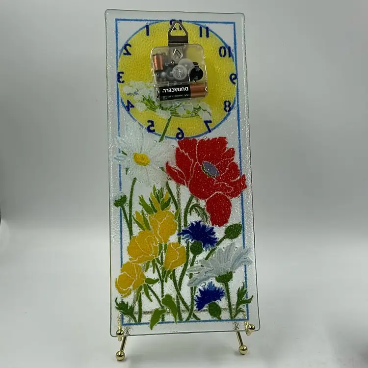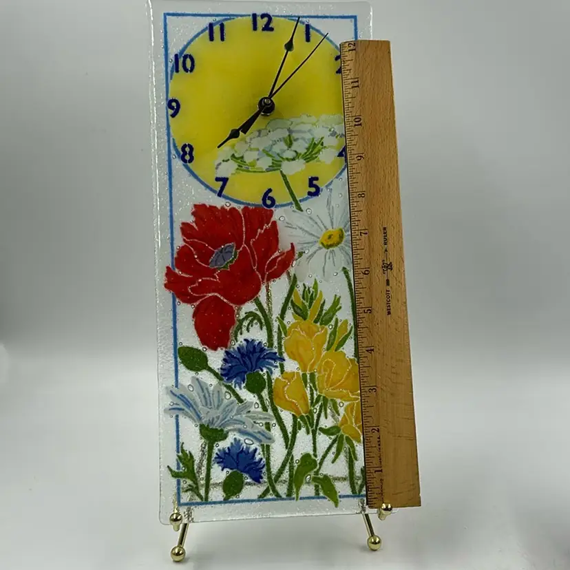 Vintage Peggy Karr Fused Glass Clock With Wild Flowers. Signed. Clock Does Work With A AA Battery Not Included. I Can’t Guarantee The Mechanical Part Because I Don’t Know How Old It Is. 13” T 6” W