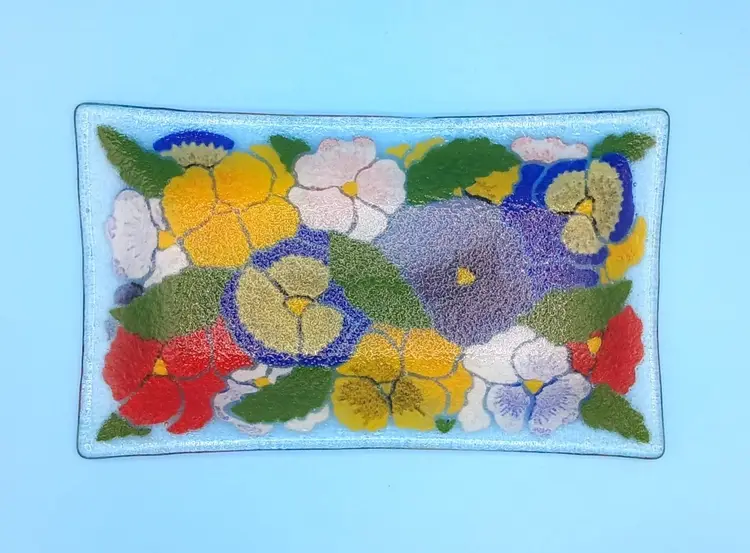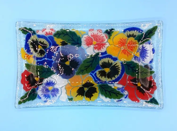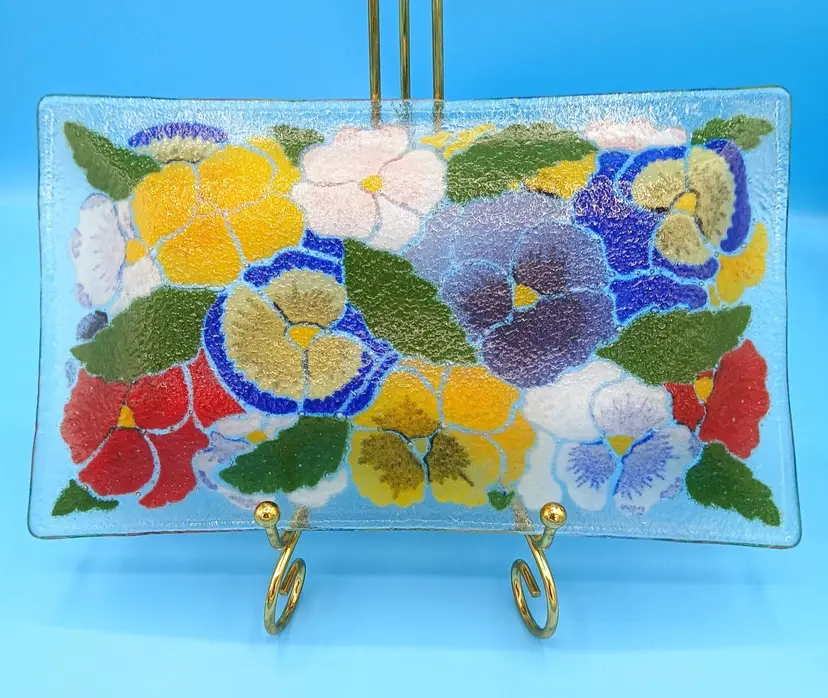 Excellent condition. No box. As beautiful and vibrant as a bouquet of the actual flower, this pansy plate is a Peggy Karr fused glass classic. Thanks for looking!