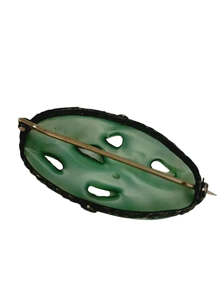 Size: 1.5" Color: Green Condition: Very good vintage Signed: None Details: In nice condition.