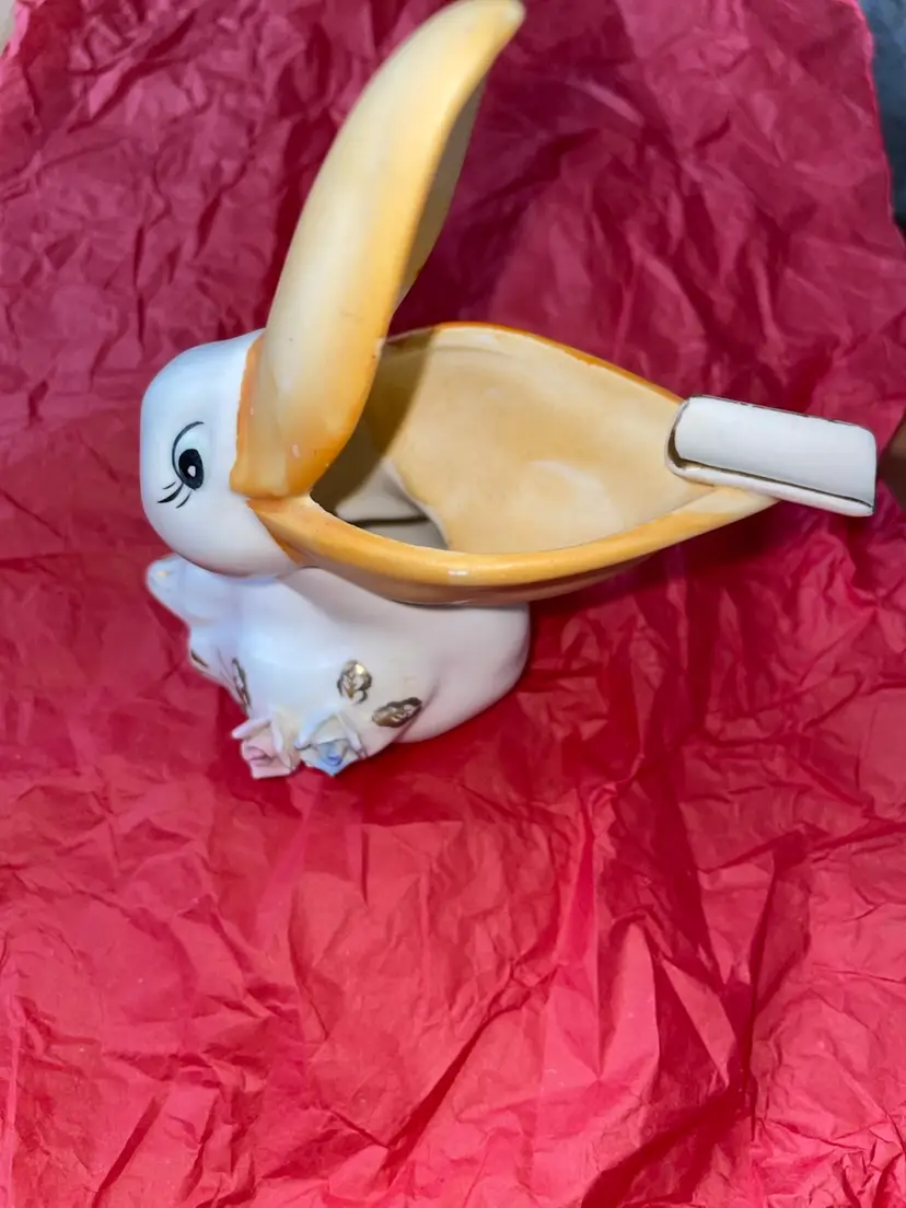 His beak can hold more than his belly can! What a cutie! No chips or repairs. 4.5” tall.