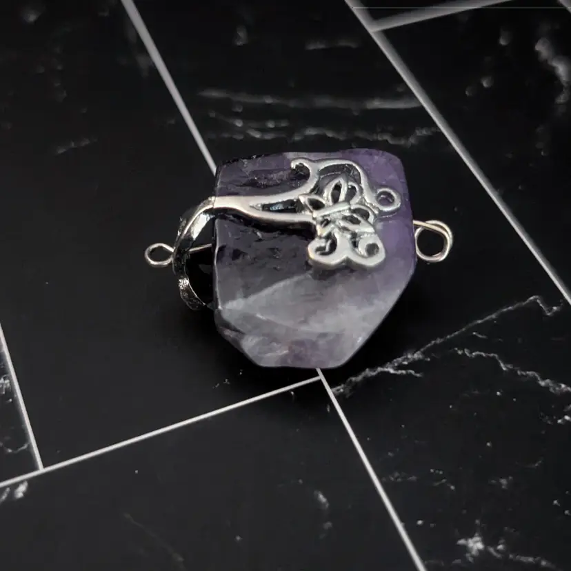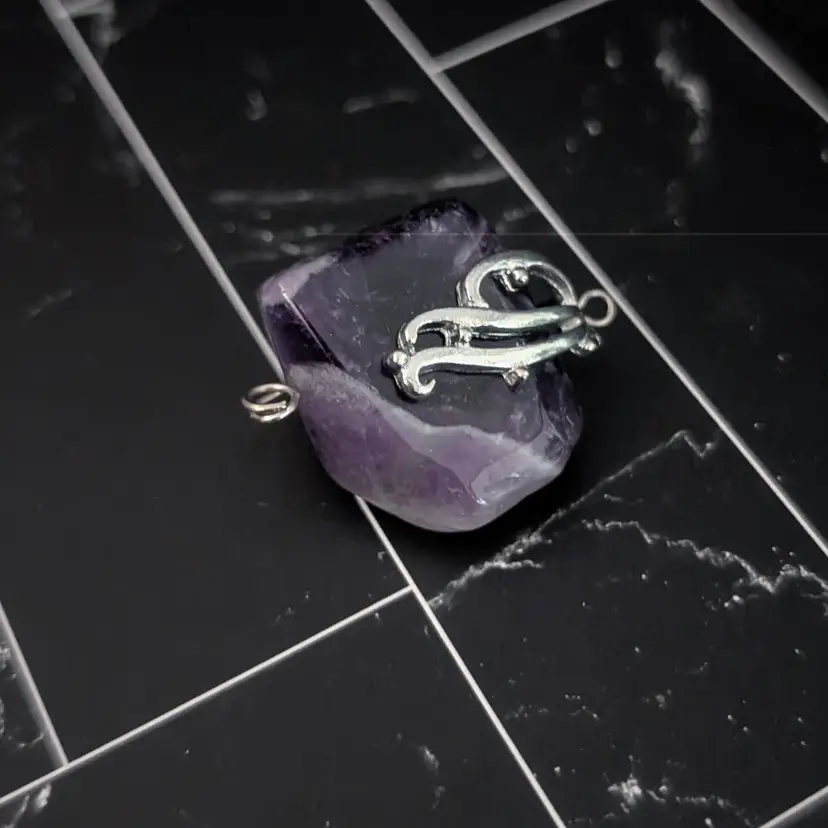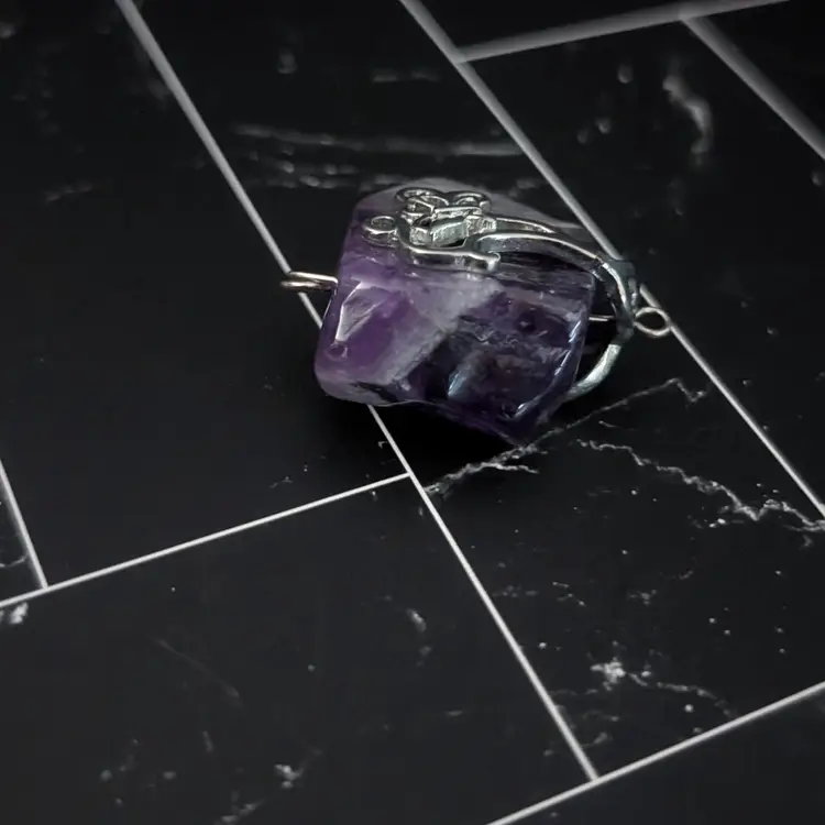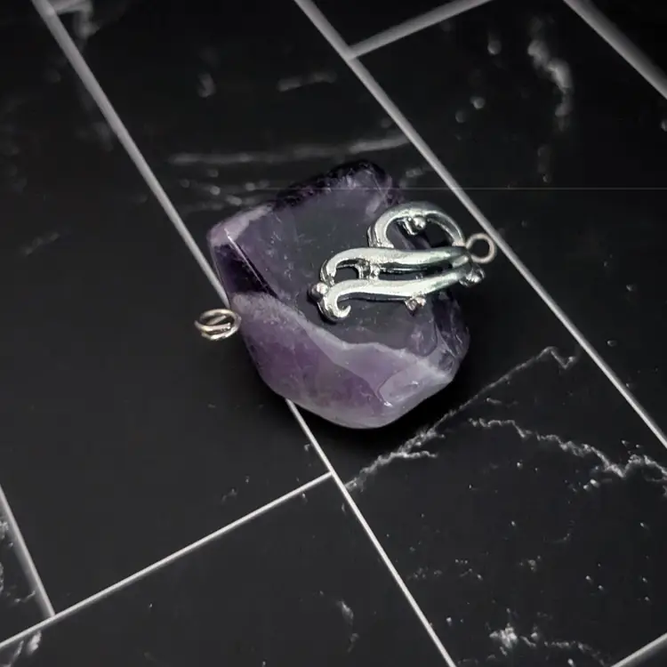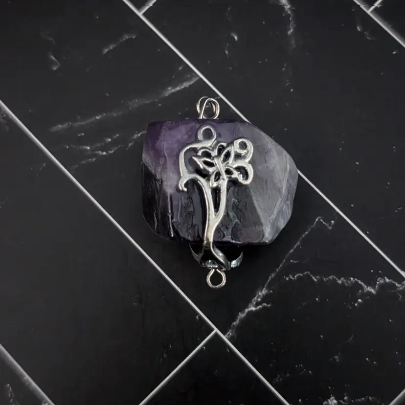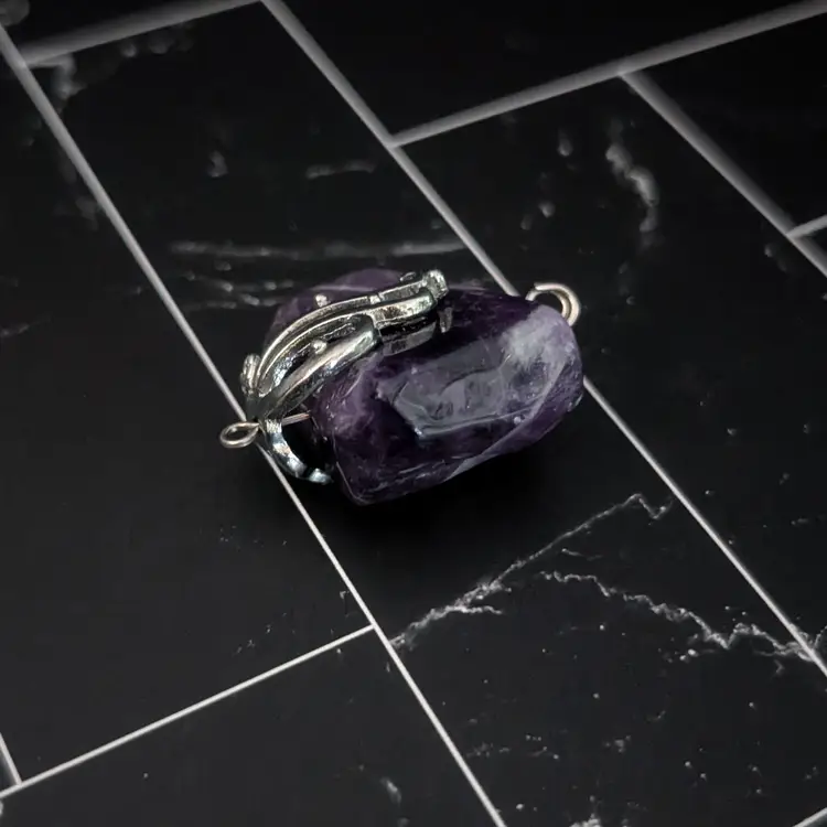 Vintage Pendant Raw Purple Stone with Silver Tone Accent - No Chain Included