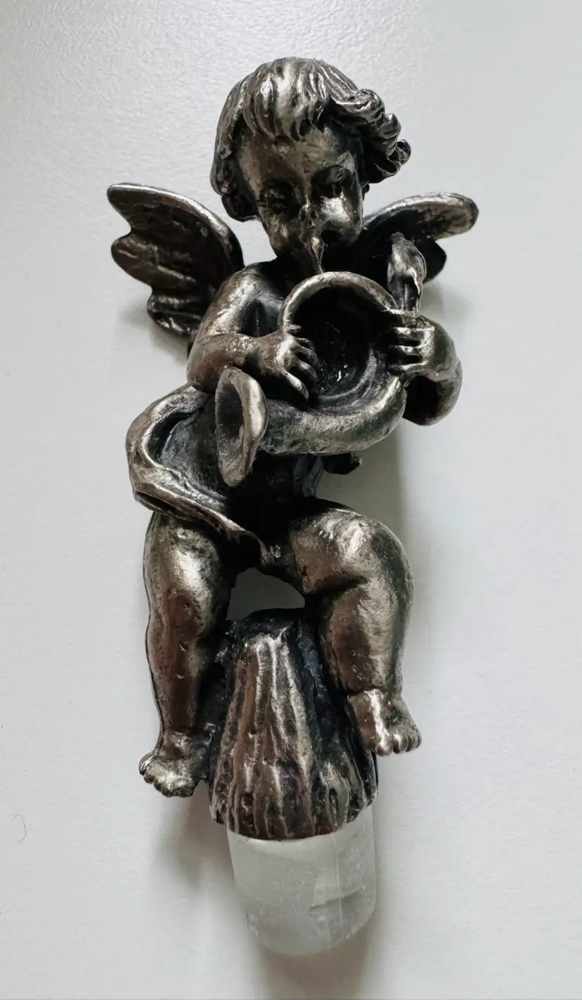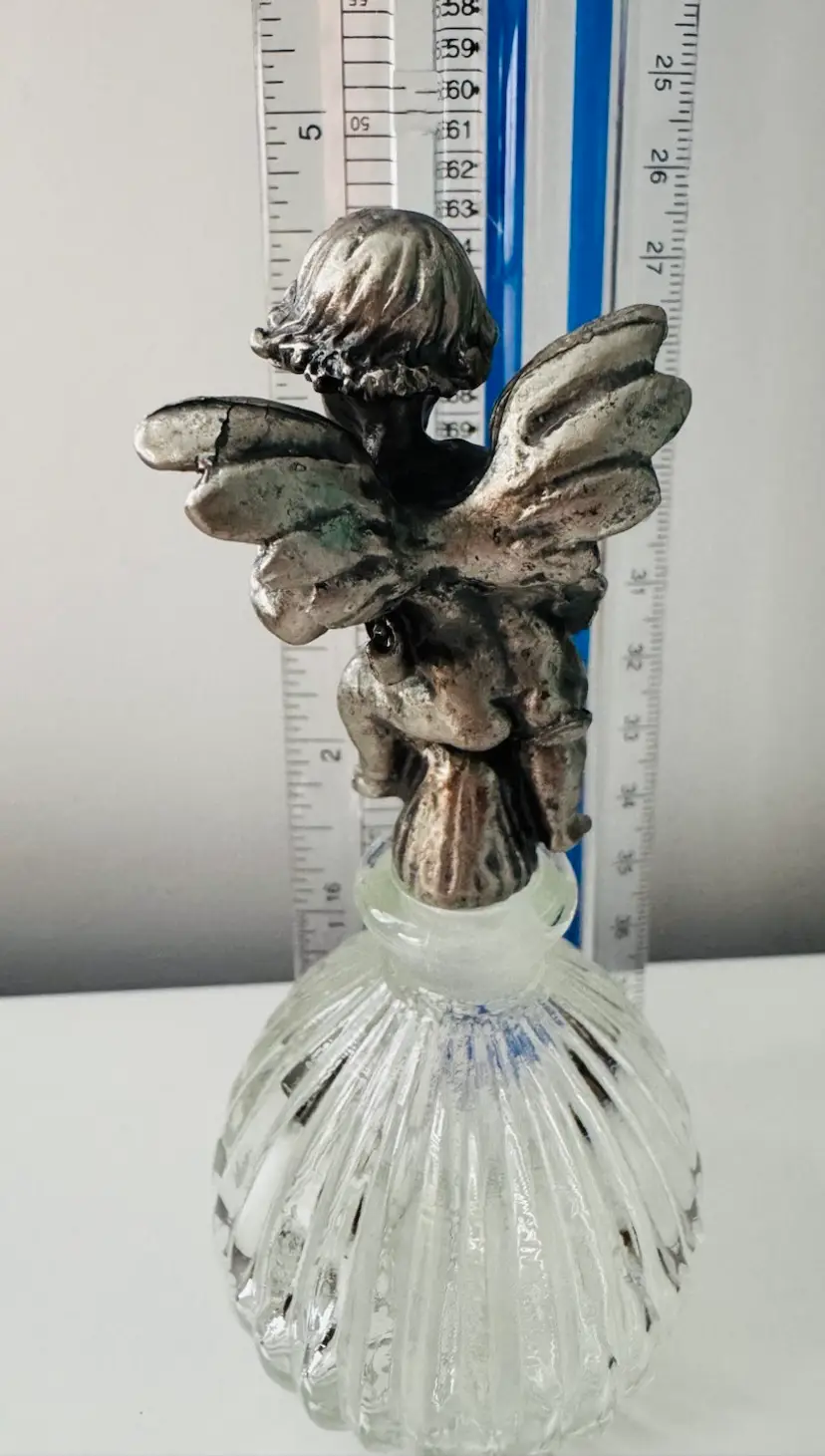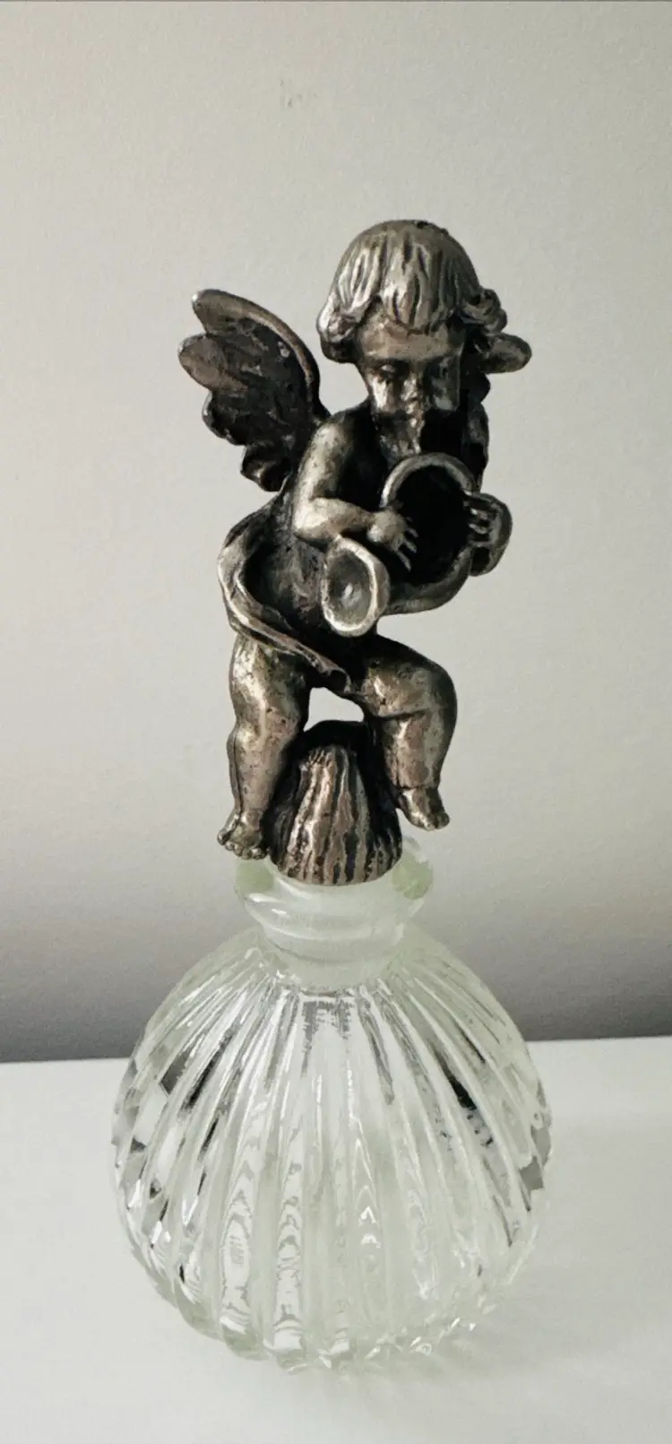 Pretty little perfume bottle. The pewter angel topper is definitely stealing the show here!